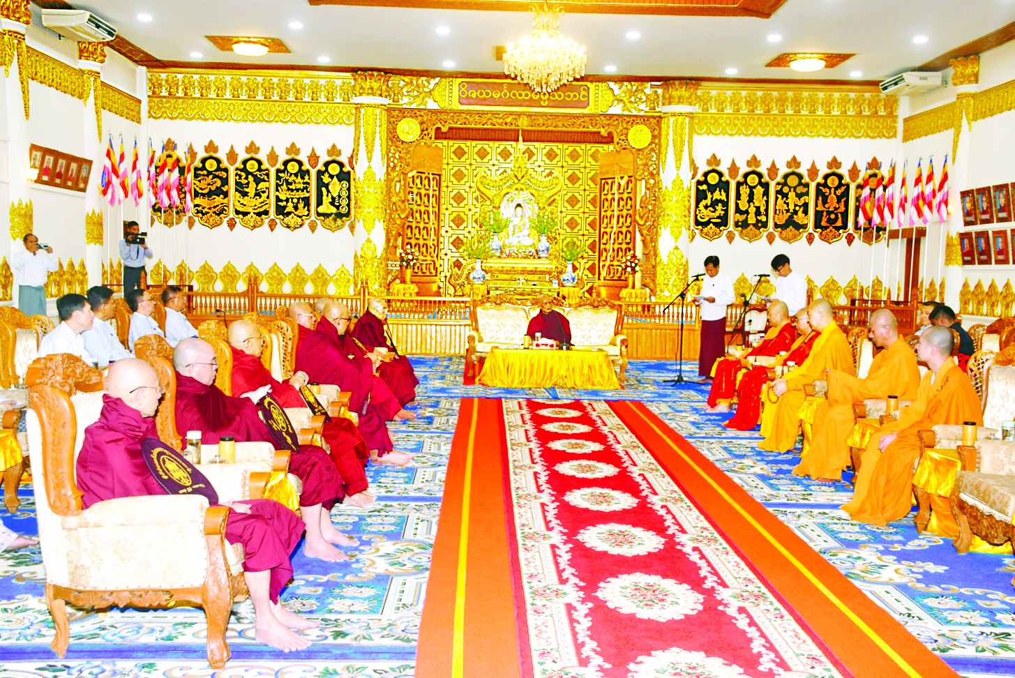 ယင်းနောက် တောင်ဘက်မုခ်ဧည့်ခန်းမဆောင်၌ ရန်ကုန်တိုင်းဒေသကြီး သံဃမဟာနာယအဖွဲ့ဥက္ကဋ္ဌ ဆရာတော် ဒေါက်တာဘဒ္ဒန္တအဂ္ဂသာမိက လင်ကွမ်းစီကျောင်းတိုက်ဆရာတော် ဦးဆောင်သည့် ကိုယ်စားလှယ်အဖွဲ့အား တွေ့ဆုံ၍ နှစ်နိုင်ငံသာသနာရေးဆိုင်ရာကိစ္စရပ်များ ဆွေးနွေးခဲ့ကြောင်း သိရသည်။