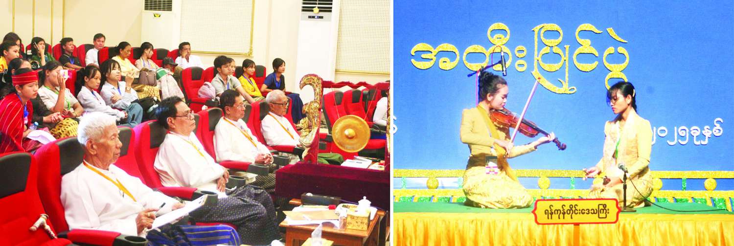 ယနေ့တွင် “မဟာဂီတ” တေးသီချင်းအဆိုပြိုင်ပွဲကို အမျိုးသားပြတိုက် (နေပြည်တော်) ရှိ Mini Theatre ၌ ကျင်းပရာ အဆင့်မြင့်ပညာအဆင့် အမျိုးသားပြိုင်ပွဲတွင် ရခိုင်ပြည်နယ်၊ မွန်ပြည်နယ်၊ ရှမ်းပြည်နယ်၊ စစ်ကိုင်းတိုင်းဒေသကြီး၊ ရန်ကုန်တိုင်းဒေသကြီး၊ မန္တလေးတိုင်းဒေသကြီး၊ ချင်းပြည်နယ်၊ ကယားပြည်နယ်၊ ပဲခူးတိုင်းဒေသကြီး၊ ဧရာဝတီတိုင်းဒေသကြီး၊ မကွေးတိုင်းဒေသကြီးနှင့် တနင်္သာရီ တိုင်းဒေသကြီးတို့မှ ပြိုင်ပွဲဝင်များက သာဆန်းရဂုံဘွေ (ပတ်ပျိုး) သီချင်းဖြင့်လည်းကောင်း၊ အခြေခံပညာအဆင့် (အသက် ၁၀ နှစ်မှ ၁၅ နှစ်အတွင်း) အမျိုးသမီးပြိုင်ပွဲ တွင် မွန်ပြည်နယ်၊ ရခိုင်ပြည်နယ်၊ မကွေးတိုင်းဒေသကြီး၊ စစ်ကိုင်းတိုင်းဒေသကြီး၊ ကရင်ပြည်နယ်၊ ဧရာဝတီတိုင်းဒေသကြီး၊ ကယားပြည်နယ်၊ ရှမ်းပြည်နယ်၊ တနင်္သာရီတိုင်းဒေသကြီး၊ ကချင်ပြည်နယ်၊ ပဲခူးတိုင်းဒေသကြီး၊ ချင်းပြည်နယ်၊ မန္တလေးတိုင်းဒေသကြီးနှင့် ရန်ကုန်တိုင်းဒေသကြီးတို့မှ ပြိုင်ပွဲ ဝင်များက ဇမ္ဗူရောင်ကွန့် (ဘွဲ့) သီချင်းဖြင့်လည်းကောင်း သီဆိုယှဉ်ပြိုင်ကြသည်။