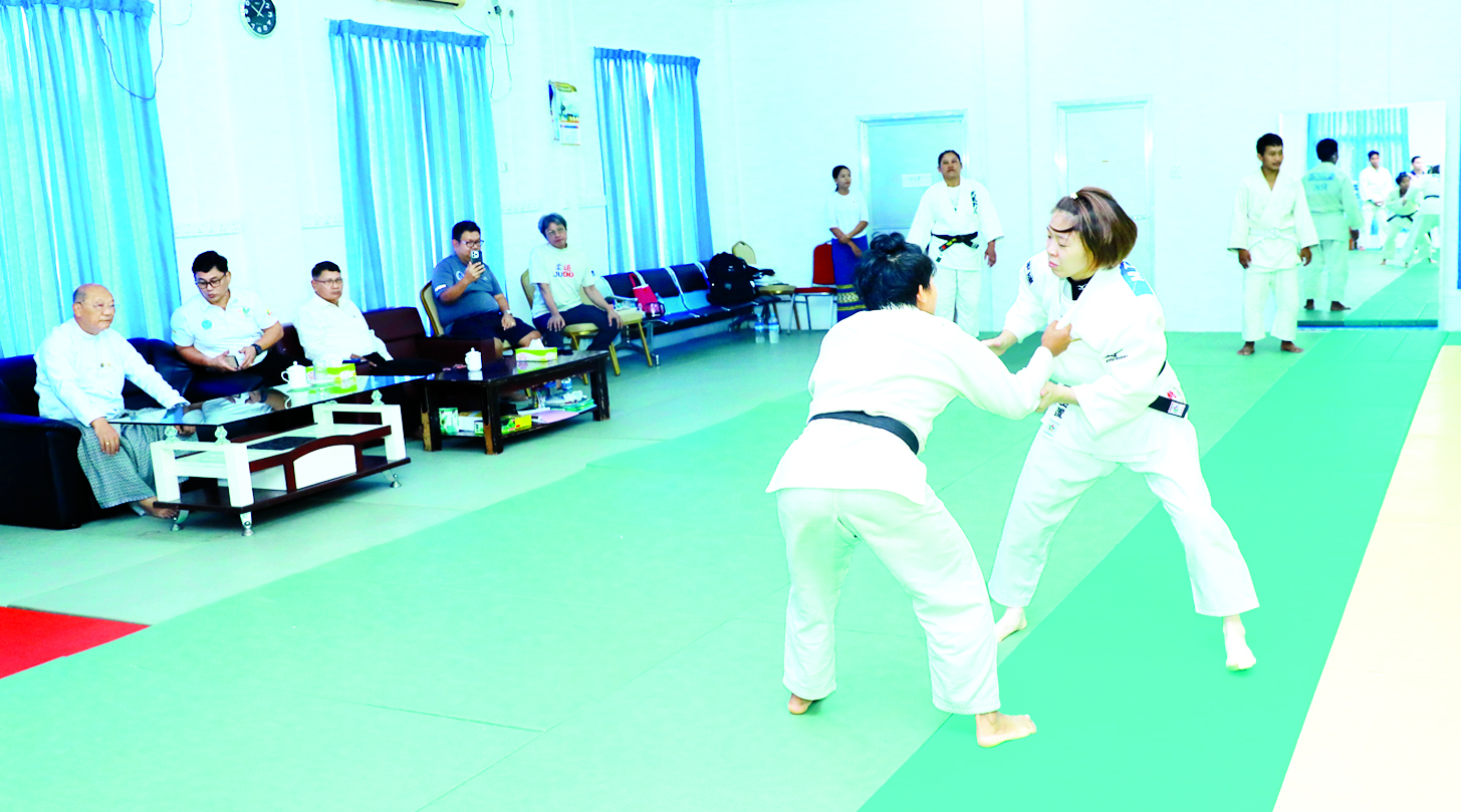 ဦးစွာ ပြည်ထောင်စုဝန်ကြီးသည် အားကစားလေ့ကျင့်ရေးစခန်း (Gold Camp)ရှိ ဂျူဒိုလေ့ကျင့်ရေးခန်းမတွင် ဂျပန်နည်းပြက ပဏာမလက်ရွေးစင် အားကစားသမားများနှင့် လူငယ်အားကစားသမား များအား နည်းစနစ်ပိုင်းဆိုင်ရာများကို Sparring ကစားခြင်းဖြင့် တစ်ဦးချင်း သင်ကြားလေ့ကျင့်ပေးနေမှုများကို ကြည့်ရှုအားပေးပြီး (၃၃)ကြိမ်မြောက် အရှေ့တောင်အာရှ အားကစားပြိုင်ပွဲသို့ ဝင်ရောက်ယှဉ်ပြိုင်မည့် အားကစားသမားများအတွက် ပြိုင်ပွဲဝင်ဝတ်စုံ ဂျူဒိုကီနှင့် ခါးစည်းခါးပတ်ဝယ်ယူထားရှိမှုအခြေအနေများကို ကြည့်ရှုစစ်ဆေးကာ ပြိုင်ပွဲဝင်ဝတ်စုံနှင့် အသားကျနေစေရန်အတွက် တာဝန်ရှိသူများအား လိုအပ်သည်များ ကြိုတင်ပြင်ဆင်ဆောင်ရွက်သွားရန် မှာကြားသည်။
