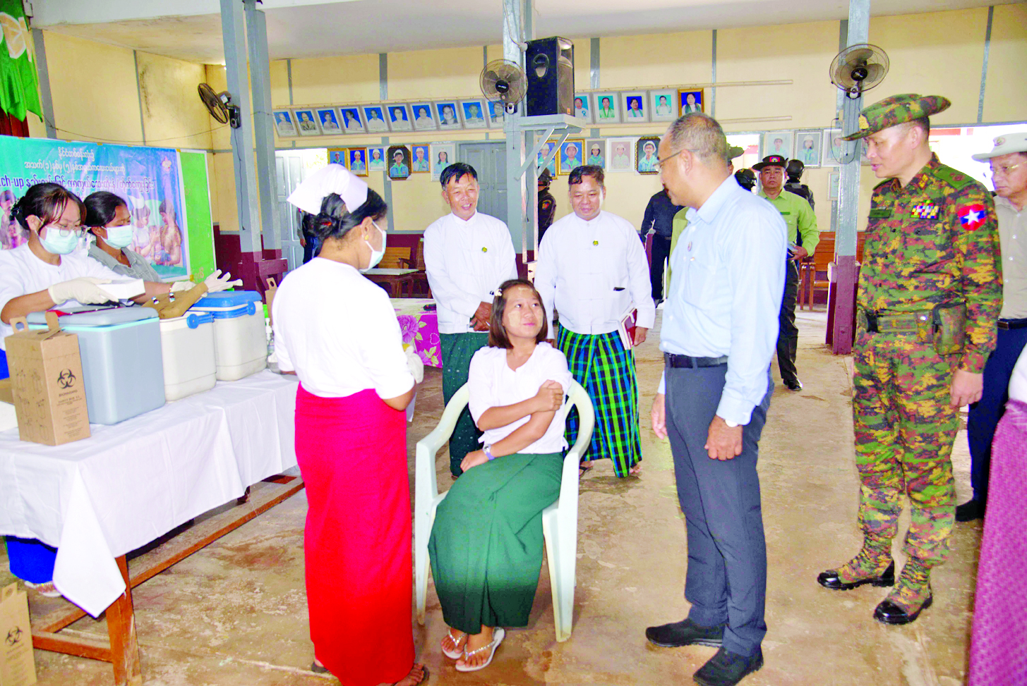 ယင်းနောက် ပြည်နယ်ဝန်ကြီးချုပ်နှင့် တာဝန်ရှိသူများသည် ကျောက်မဲမြို့ လာဘမုနိတရုတ်ဘုံကျောင်းတွင် ဖွင့်လှစ်ထားရှိသည့် ယာယီဆေးရုံ၌ ဆေးကုသမှုခံယူနေကြသော ပြည်သူများအား သွားရောက်ကြည့်ရှု၍ အာဟာရ​ဖြည့်ပစ္စည်းများပေးအပ်သည်။ ထို့နောက် ပြည်နယ်ဝန်ကြီးချုပ်နှင့် တာဝန်ရှိသူများသည် ကမ္ဘောဇရှမ်းကျောင်းကျောင်းတိုက်သို့ သွားရောက်၍ သံဃာတော်များအား လှူဖွယ်ပစ္စည်းများ ဆက်ကပ်လှူဒါန်းကြသည်။