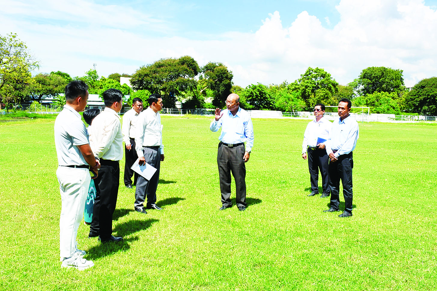 မြန်မာနိုင်ငံအိုလံပစ်ကော်မတီဥက္ကဋ္ဌ ပြည်ထောင်စုဝန်ကြီး Jeng Phang နော်တောင် မန္တလေးတိုင်းဒေသကြီး ကျောက်ဆည်ခရိုင်အတွင်းရှိ အားကစားကွင်း/ အားကစားရုံများအားကြည့်ရှုစစ်ဆေး