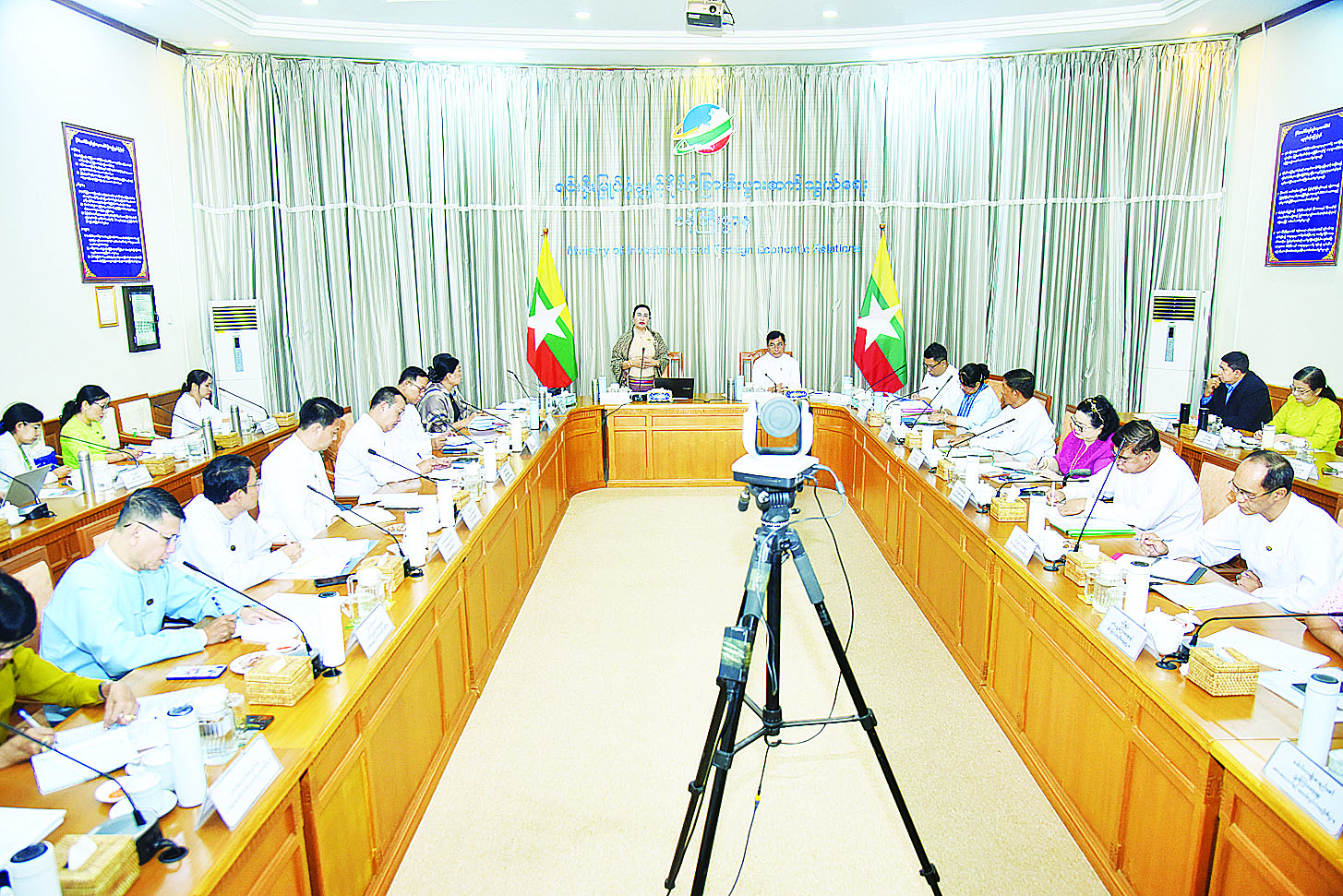 နိုင်ငံတော်အကြီးအကဲ၏ ခရီးစဉ်လမ်းညွှန်ချက်များ၊ တရုတ်ပြည်သူ့သမ္မတနိုင်ငံ ရှမန်ခရီးစဉ်၊ ဘယ်လာရုစ်သမ္မတနိုင်ငံ မင့်စ်မြို့ခရီးစဉ်များနှင့် စပ်လျဉ်း၍ ဆက်လက်ဆောင်ရွက်ရမည့် လုပ်ငန်းစဉ်များအား အစိုးရ၊ ပုဂ္ဂလိကကဏ္ဍတို့အကြား ပူးပေါင်း အကောင်အထည်ဖော်ဆောင်ရွက်နိုင်ရေး ညှိနှိုင်းအစည်းအဝေးကို ယနေ့နံနက်ပိုင်းတွင် ရင်းနှီးမြှုပ်နှံမှု နှင့် နိုင်ငံခြားစီးပွားဆက်သွယ်ရေးဝန်ကြီးဌာန ရုံး အမှတ် (၁)၊ အစည်းအဝေးခန်းမ (၁) ၌ ကျင်းပသည်။