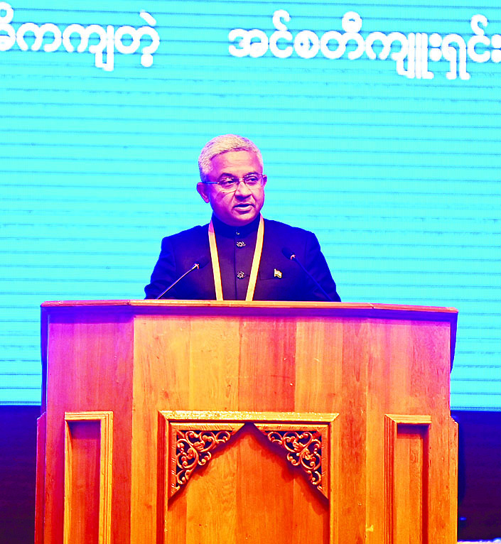 ကမ္ဘာပေါ်မှာ လူဦးရေ ၁.၄ ဘီလီယံကျော်ရှိပြီး တရားဝင်ဘာသာစကား ၂၂ မျိုးနဲ့ ငြိမ်းချမ်းစွာ အတူနေထိုင်နေတဲ့ အကြီးဆုံးဒီမိုကရေစီနိုင်ငံလည်းဖြစ်၊ ကမ္ဘာပေါ်မှာ စတုတ္ထအကြီးဆုံးနဲ့ အလျင်မြန်ဆုံးတိုးတက်နေတဲ့ စီးပွားရေးနိုင်ငံကြီးလည်းဖြစ်၊ အခွန်ကောက်ခံမှုပုံစံတစ်ခုတည်းနဲ့ ဒစ်ဂျစ်တယ်အခြေခံအဆောက်အအုံတစ်ခုတည်းရှိတဲ့ နိုင်ငံလည်းဖြစ်တဲ့ အိန္ဒိယနိုင်ငံဟာ ပြီးခဲ့တဲ့ ၂ နှစ်အတွင်း ဖွဲ့စည်းပုံအခြေခံဥပဒေရေးရာနဲ့ ဖက်ဒရယ်စနစ်ဆိုင်ရာ အတွေ့အကြုံတွေကို မြန်မာနိုင်ငံနဲ့ ဝေမျှခွင့်ရတဲ့အတွက် ဂုဏ်ယူကြောင်း ပြောကြားလိုပါတယ်။ ကျွန်တော်တို့ဟာ ဟောပြောပွဲနှစ်ခုနဲ့ အလုပ်ရုံဆွေးနွေးပွဲနှစ်ခု ကျင်းပခဲ့ပါတယ်။ အိန္ဒိယနိုင်ငံရဲ့ ဗဟိုနဲ့ ပြည်နယ်တွေအကြား ဥပဒေပြုရေး၊ အုပ်ချုပ်ရေးအာဏာခွဲဝေပုံ၊ အခွန်ကောက်ခံမှုနဲ့ ဝင်ငွေခွဲဝေမှု အသေးစိတ်တွေကိုလည်း ပါဝင်သူတွေနဲ့အတူ ဆွေးနွေးဝေမျှခဲ့ကြပါတယ်။ ဒီလိုလုပ်ဆောင်တဲ့အခါမှာ ကျွန်တော်တို့ဟာ မြန်မာနိုင်ငံကဦးဆောင်ပြီး မြန်မာနိုင်ငံကပိုင်ဆိုင်တဲ့၊ နိုင်ငံအတွက် အသင့်တော်ဆုံးဖြစ်တဲ့ ဖြေရှင်းနည်းတစ်ခုရရှိလာရေးကို အမြဲတမ်း ထောက်ခံရပ်တည်ခဲ့ပါတယ်။