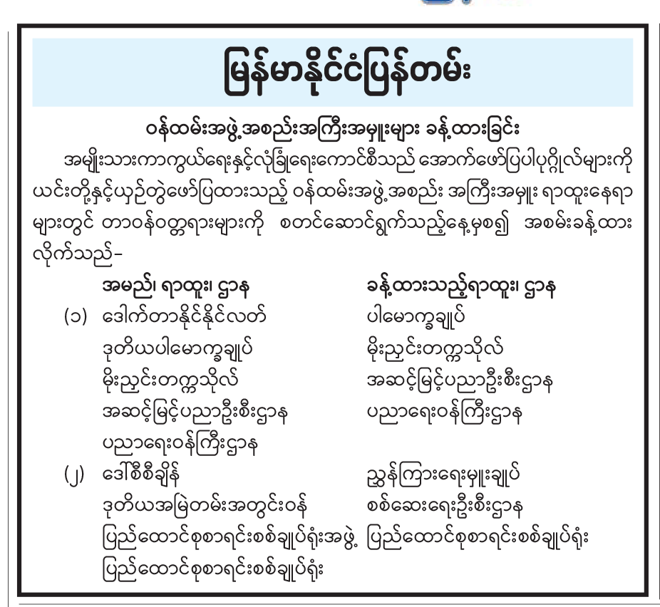 ဝန်ကြီးဌာန ကြေညာချက်များ