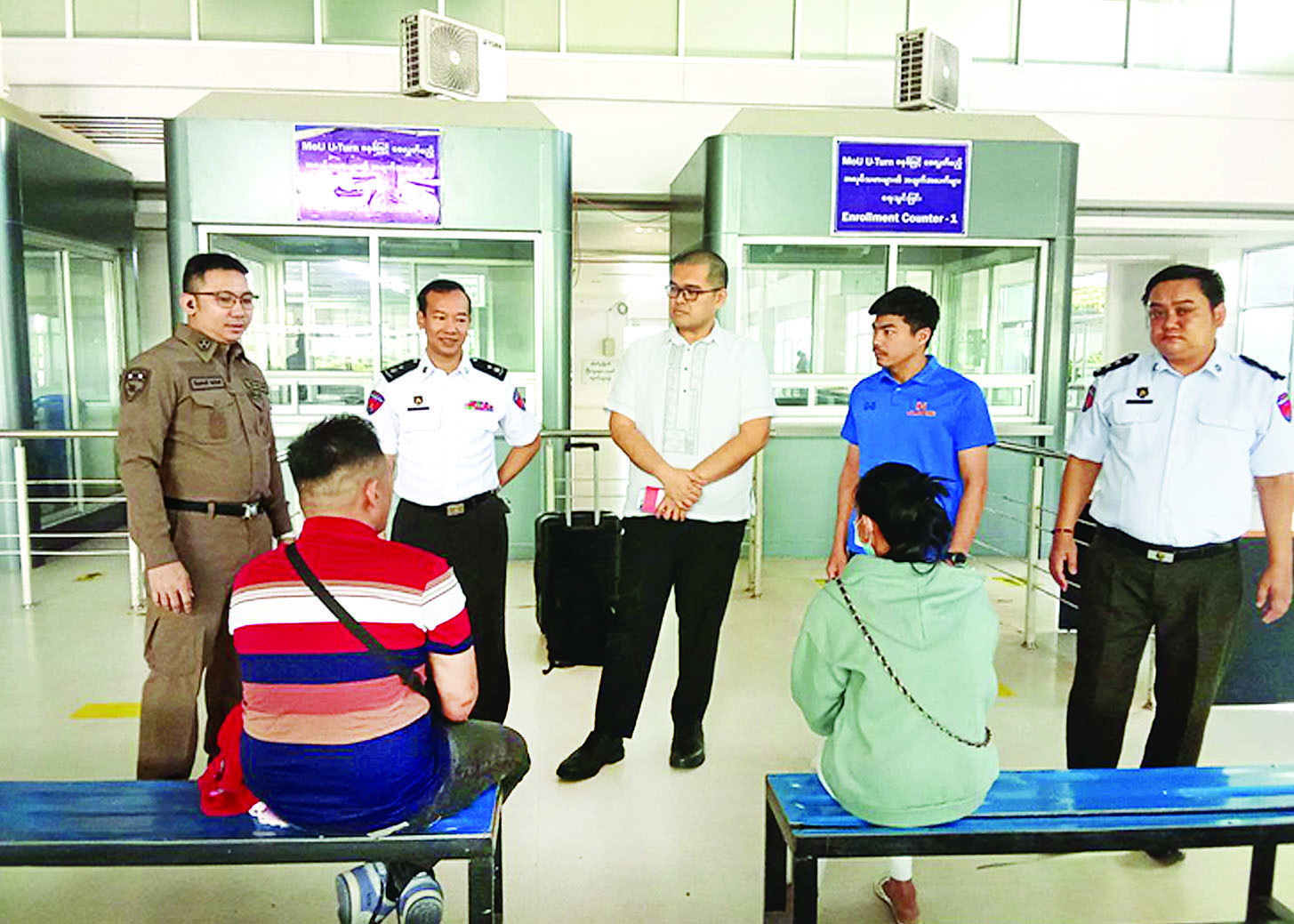 ထိုင်းနိုင်ငံအပါအဝင် အိမ်နီးချင်းနိုင်ငံအချို့ကိုတစ်ဆင့်ခံဖြတ်သန်း၍ မြန်မာနိုင်ငံအတွင်းသို့ နယ်စပ်လမ်းကြောင်းများမှ တရားမဝင် ဝင်ရောက်လာပြီး ကရင်ပြည်နယ်မြဝတီမြို့-ရွှေကုက္ကိုလ်နှင့် မဲ့ထော်သလေး(KK Park)နယ်မြေများတွင် အွန်လိုင်းလောင်းကစားမှုများ၊ အွန်လိုင်းလိမ်လည်မှုများ၊ ဒုစရိုက်မှုများ ကျူးလွန်ခဲ့ကြသည့် ဖိလစ်ပိုင်နိုင်ငံသားနှစ်ဦးအား မြန်မာ-ထိုင်း အမှတ်(၂) ချစ်ကြည်ရေးတံတားမှတစ်ဆင့်သက်ဆိုင်ရာနိုင်ငံသို့ လူသားချင်းစာနာထောက်ထားမှုနှင့်နိုင်ငံအချင်းချင်းချစ်ကြည်ရင်းနှီးမှုတို့ကိုရှေးရှု၍ ဥပဒေလုပ်ထုံးလုပ်နည်းများနှင့်အညီ ထပ်မံလွှဲပြောင်းပေးသည်။
