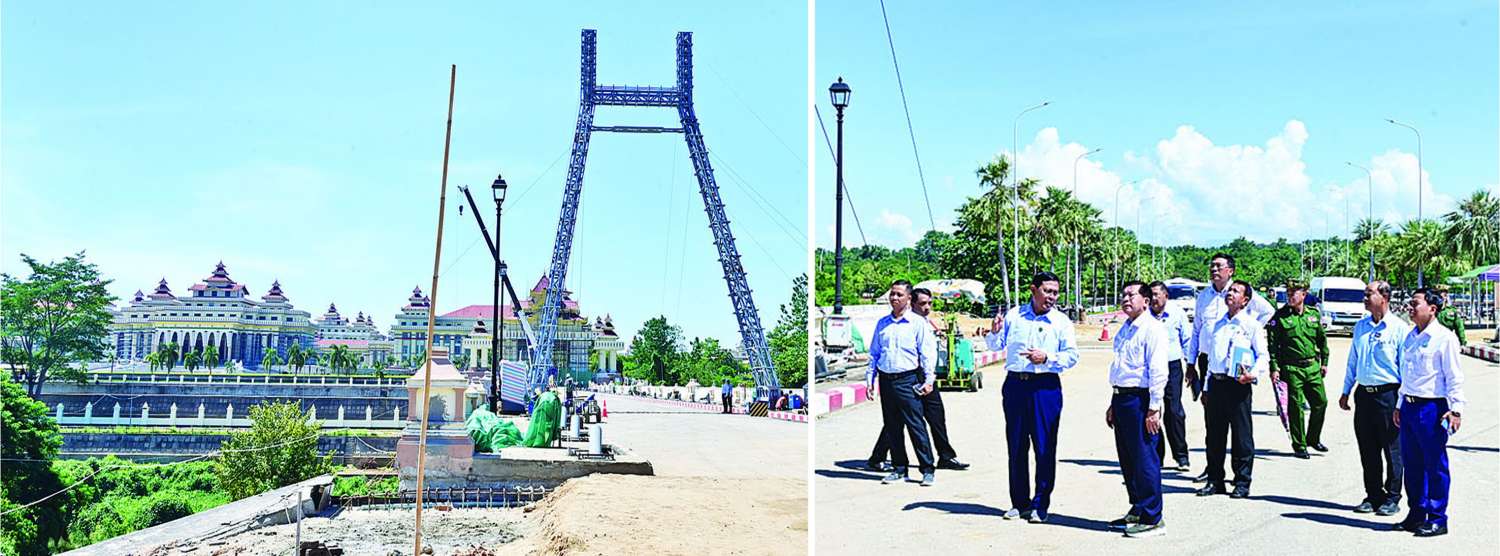 ဦးစွာ နိုင်ငံတော်ယာယီသမ္မတ နိုင်ငံတော်လုံခြုံရေးနှင့်အေးချမ်းသာယာရေးကော်မရှင်ဥက္ကဋ္ဌသည် နေပြည်တော်မြို့တော်ခန်းမအနီး ပြည်သူ့ရင်ပြင်နှင့်ဖျော်ဖြေရေးရင်ပြင်တည်ဆောက်နေမှုနှင့် ပျဉ်းမနား-တောင်ညို ၈ လမ်းသွားလမ်းဖောက်လုပ်နေမှုလုပ်ငန်းခွင်နေရာသို့ ရောက်ရှိကြရာ ဆောက်လုပ်ရေးဝန်ကြီးဌာနပြည်ထောင်စုဝန်ကြီး ဦးမျိုးသန့်၊ နေပြည်တော်ကောင်စီဥက္ကဋ္ဌ ဦးသန်းထွန်းဦးနှင့်တာဝန်ရှိသူများက လုပ်ငန်းဆောင်ရွက်နေမှုအခြေအနေများကို ရှင်းလင်းတင်ပြသည်။
