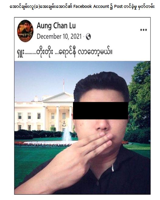 ဖမ်းဆီးရမိသူများအားစိစစ်ဖော်ထုတ်ချက်အရ ၎င်းတို့သည် ဖွဲ့စည်းပုံအခြေခံဥပဒေ(၂၀၀၈ ခုနှစ်)နှင့်အညီ တပ်မတော်မှနိုင်ငံတော်တာဝန်ထမ်းဆောင်နေသည့်အပေါ်ထောက်ခံမှုမရှိခဲ့သည့်အပြင် မကြာမီကျင်းပရန်ရှိသော ပါတီစုံဒီမိုကရေစီအထွေထွေရွေးကောက်ပွဲ အောင်မြင်စေရေးအတွက်လည်း ၎င်းတို့တတ်ကျွမ်းသည့်အနုပညာကဏ္ဍမှ ပူးပေါင်းပါဝင်ခြင်းမရှိခဲ့ကြောင်း၊ ၎င်းအပြင် ရွေးကောက်ပွဲအောင်မြင်စေရေးအတွက် တစ်တပ်တစ်အားပါဝင်ဆောင်ရွက်နေသည့်အနုပညာရှင်များအား ပြည်ပရောက်အကြမ်းဖက်အဖွဲ့အစည်းထောက်ခံသူများနှင့်တရားခံပြေးများမှ လူမှုကွန်ရက်စာမျက်နှာမှတစ်ဆင့် ဝေဖန်ရေးသားသည့်အပေါ်ထောက်ခံအားပေးခဲ့ကြကြောင်း စိစစ်တွေ့ရှိရသည်။
