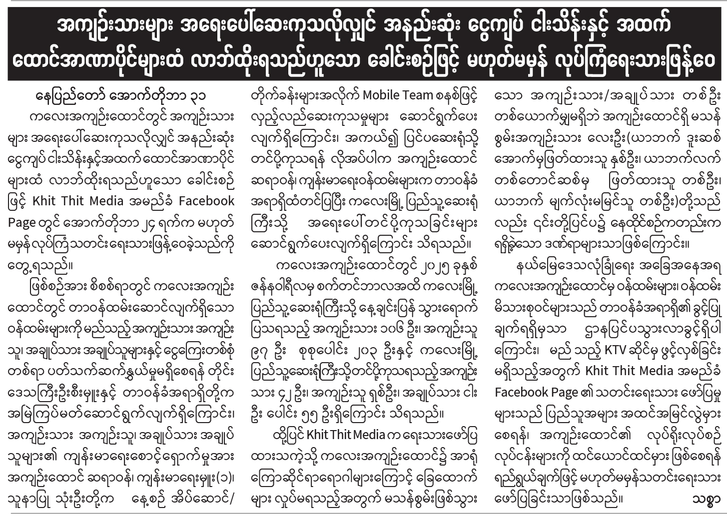 အကျဉ်းသားများအရေးပေါ်ဆေးကုသလိုလျှင် အနည်းဆုံးငွေကျပ် ငါးသိန်းနှင့်အထက် ထောင်အာဏာပိုင်များထံ လာဘ်ထိုးရသည်ဟူသော ခေါင်းစဉ်ဖြင့် မဟုတ်မမှန်လုပ်ကြံရေးသားဖြန့်ဝေ 11/01/2025
