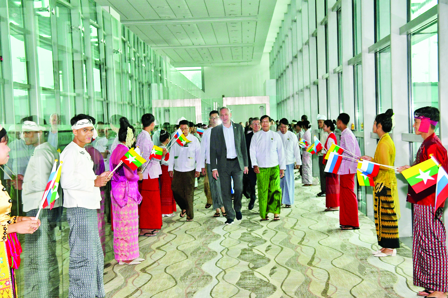 မြန်မာနိုင်ငံ၌ရောက်ရှိနေသည့် ရုရှားဖက်ဒရေးရှင်းနိုင်ငံ နိုဗိုစီဗစ်ဒေသအုပ်ချုပ်ရေးမှူး H.E.Mr. Andrey Aleksandrovich Travnikov ဦးဆောင်သော ကိုယ်စားလှယ်အဖွဲ့ဝင်များသည် ယနေ့နံနက်ပိုင်းတွင် နေပြည်တော်မှ တပ်မတော်အထူးလေယာဉ်ဖြင့်ထွက်ခွာရာ ရန်ကုန် မြို့သို့ ရောက်ရှိကြသည်။
