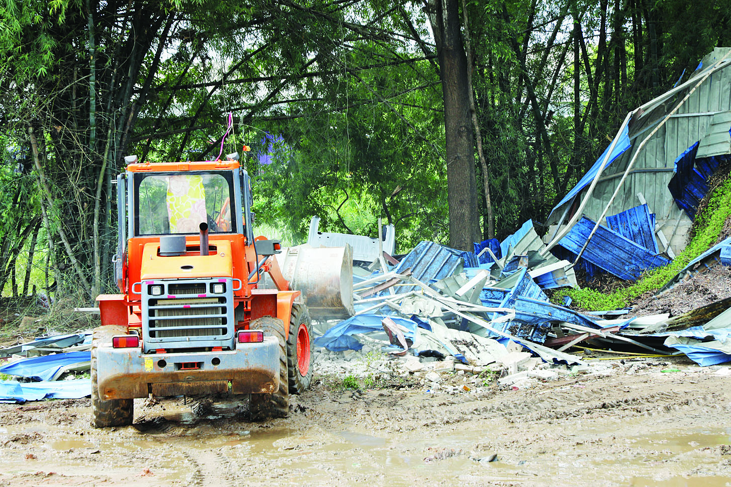 ထိုသို့ ဖျက်ဆီးရှင်းလင်းခြင်းလုပ်ငန်းများ ဆောင်ရွက်ရာတွင် လုံခြုံရေးအဖွဲ့နှင့် ဖယ်ရှားရှင်းလင်းရေးအဖွဲ့ဝင်များသည် ယနေ့နံနက်ပိုင်းတွင် စက်၊ ယာဉ်၊ ယန္တရားများနှင့်အတူ မြဝတီမြို့ အမှတ် (၅) ရပ်ကွက်ရှိ ၃၅ ဂိတ် ဒေသအခေါ် အောင်ပါဝါဂိတ်-၂ ကို သွားရောက်စစ်ဆေးပြီး အလျားပေ ၁၂၀၊ အနံပေ ၆၀၊ အမြင့် ၂၅ ပေရှိ သံဖရိန်၊ အုတ်တက်၊ သွပ်မိုးသွပ်ကာ ပစ္စည်းသိုလှောင်ရုံအား ဖယ်ရှားရှင်းလင်းခြင်းလုပ်ငန်းကို ဆောင်ရွက်ကြသည်။