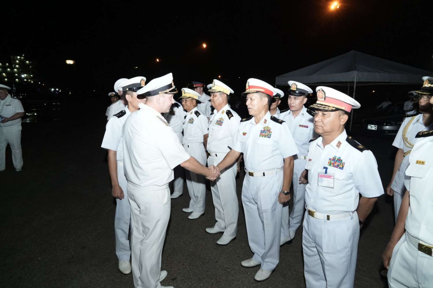 ရုရှားရေတပ် Pacific Fleet မှ ဖရီဂိတ်စစ်ရေယာဉ် Marshal Shaposhnikov ၊ ကော်ဗက်စစ် ရေယာဉ် Gremyashchiy နှင့်ထောက်ပံ့ရေးရေယာဉ် Boris Butoma တို့သည် မြန်မာနိုင်ငံသို့ တတိယအကြိမ် မြန်မာ-ရုရှားနှစ်နိုင်ငံရေကြောင်းလုံခြုံရေးဆိုင်ရာ လေ့ကျင့်ခန်းဆောင်ရွက်ရန်နှင့် ချစ်ကြည်ရေးခရီးလည်ပတ်ရန် ယနေ့ညနေပိုင်းတွင် ရန်ကုန်မြို့၊ သီလဝါဆိပ်ကမ်းသို့ ရောက်ရှိလာရာ တပ်မတော်(ရေ)မှ အရာရှိကြီးများ၊ အရာရှိ၊ စစ်သည်များ၊ မြန်မာနိုင်ငံသို့ ချစ်ကြည်ရေးခရီး ရောက်ရှိနေသည့် ရုရှားရေတပ်မှ ဒုတိယရေတပ်ဦးစီးချုပ် ဒုတိယဗိုလ်ချုပ်ကြီး Aleksei Anatolievich Kiiashko ၊ မြန်မာနိုင်ငံဆိုင်ရာ ရုရှားစစ်သံမှူးနှင့် တာဝန်ရှိသူများက ကြိုဆိုနှုတ်ဆက်ကြသည်။