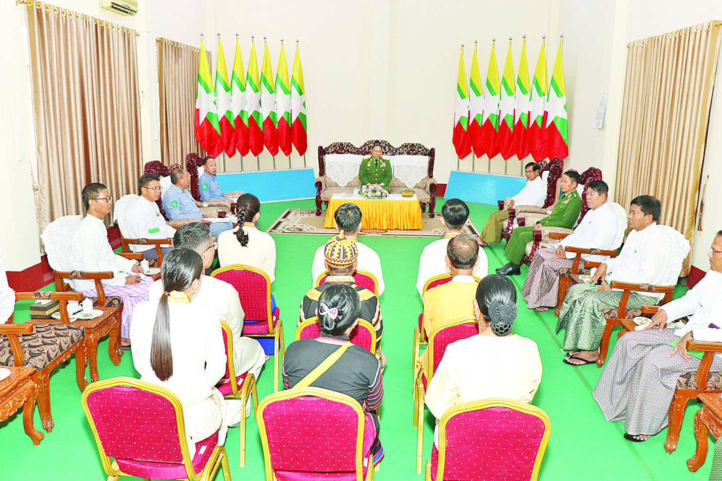 သင်တန်းဆင်း မောင်တို့မယ်တို့အနေဖြင့် နိုင်ငံတော်ဖွံ့ဖြိုးတိုးတက်ရေးနှင့် နိုင်ငံတော်ကာကွယ် စောင့်ရှောက်ရေးလုပ်ငန်းများဆောင်ရွက်ရာ၌ မြင့်မားသောစိတ်ဓာတ်၊ မှန်ကန်သောအတွေးအခေါ်၊ ခံယူချက်၊ မြဲမြံသောအကျင့်စာရိတ္တကောင်းများကို လက်ကိုင်ပြုပြီး ပြည်သူလူထုနှင့်အတူ ပူးပေါင်းဆောင်ရွက်ကြရန်၊ နိုင်ငံတော်မှ အခမဲ့ပညာရပ်များသင်ကြားပေးခြင်းနှင့် အလုပ်အကိုင်များ ရရှိအောင်ဆောင်ရွက်ပေးခဲ့သည့် ကျေးဇူးတရားကို သိရှိနားလည်ပြီး မိမိတို့လေ့လာဆည်းပူးခဲ့သည့် အဆင့်မြင့်ပညာရပ်များဖြင့် ကျရာလုပ်ငန်းနယ်ပယ်အသီးသီး၌ လက်တွေ့အသုံးပြုပြီး နယ်စပ်ဒေသတိုင်းရင်းသားများ၏ လူမှုစီးပွားဘဝများ ပိုမိုဖွံ့ဖြိုးတိုးတက်ရေးအတွက် အစွမ်းကုန်ကြိုးစားဆောင်ရွက်သွားကြရန်၊ စစ်မှန်သော မျိုးချစ်စိတ်၊ ပြည်ထောင်စုစိတ်ဓာတ်နှင့် ဒို့တာဝန်အရေး ၃ ပါးတို့ကို ဦးထိပ်ပန်ဆင်လျက် နိုင်ငံတော်က အားကိုးအားထားပြုရမည့် နိုင်ငံ့ဝန်ထမ်း ကောင်းများအဖြစ် ကြိုးစားလုပ်ကိုင်ဆောင်ရွက်သွားကြရန် တိုက်တွန်းမှာကြားသည်။
