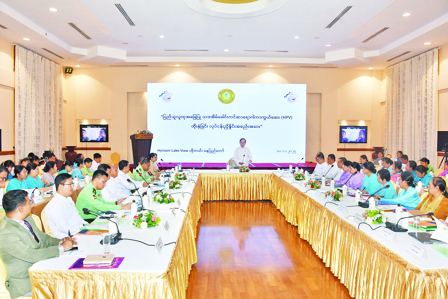 ပြည်သူလူထုအခြေပြုသားအိမ်ခေါင်းကင်ဆာရောဂါကာကွယ်ဆေး(HPV) ထိုးနှံခြင်းဆိုင်ရာ ညှိနှိုင်းအစည်းအဝေးကို ယနေ့နံနက်ပိုင်းတွင် နေပြည်တော် ဒက္ခိဏသီရိမြို့နယ် Horizon Lake View ဟိုတယ်၌ ကျင်းပသည်။