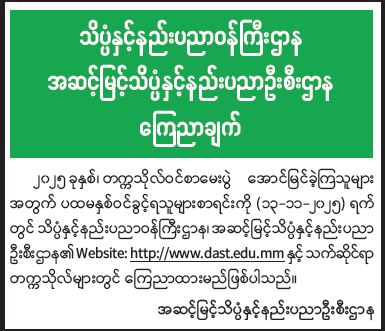 သိပ္ပံနှင့်နည်းပညာဝန်ကြီးဌာန အဆင့်မြင့်သိပ္ပံနှင့်နည်းပညာဦးစီးဌာန ကြေညာချက်
