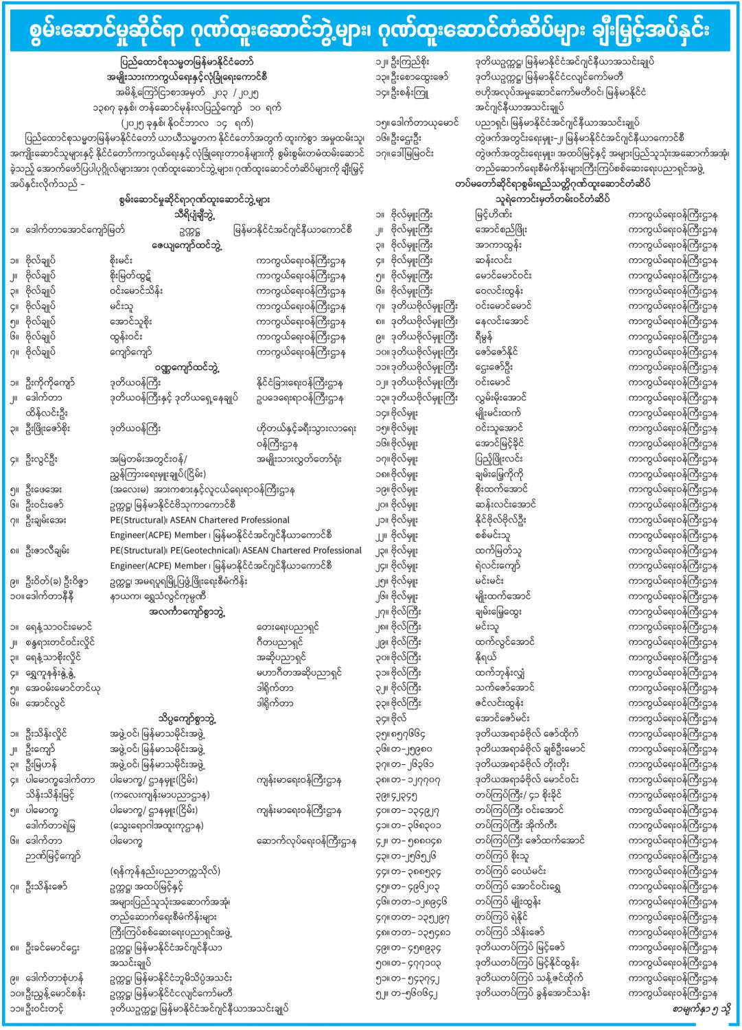 ဦးစီးဌာနနှင့် လုပ်ငန်းများ၏ ကြေညာချက်များ