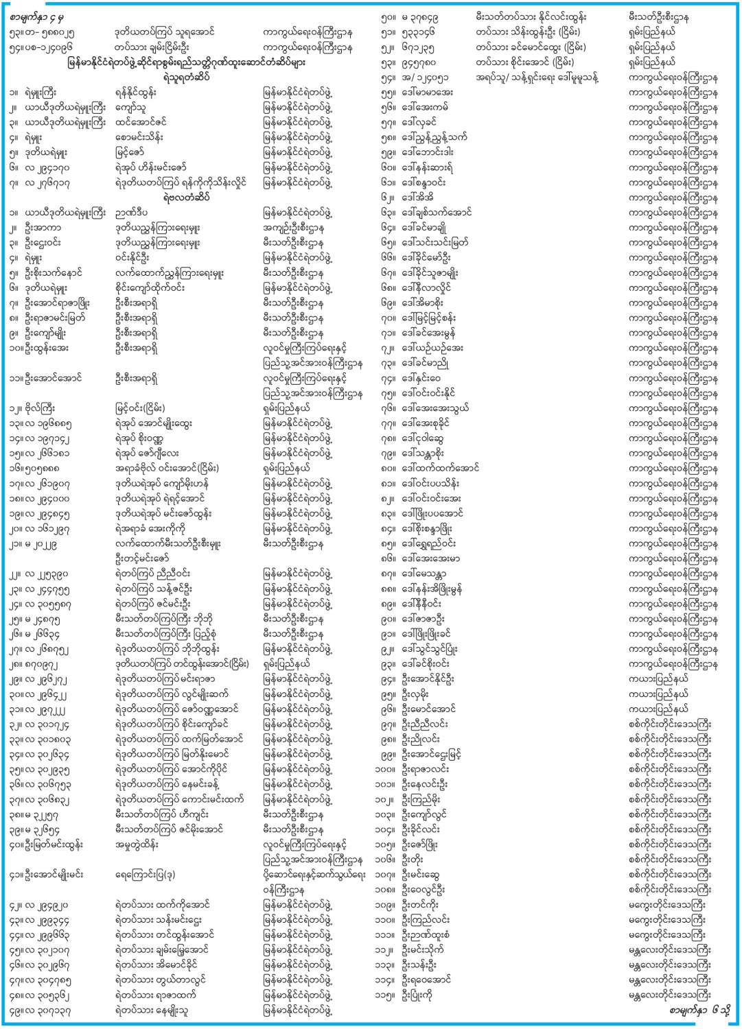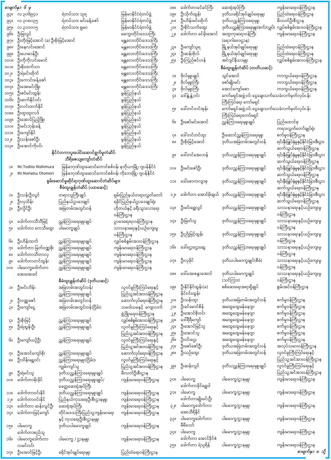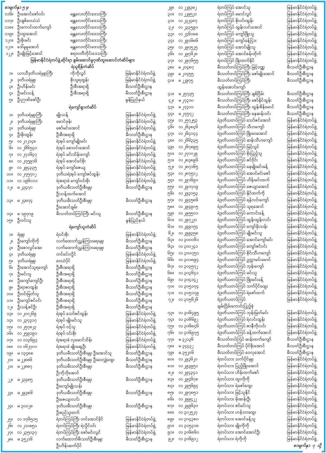 ဝန်ကြီးဌာန ကြေညာချက်များ
