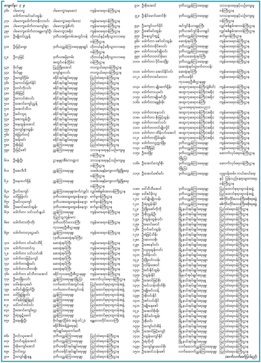ဝန်ကြီးဌာနအကြောင်း