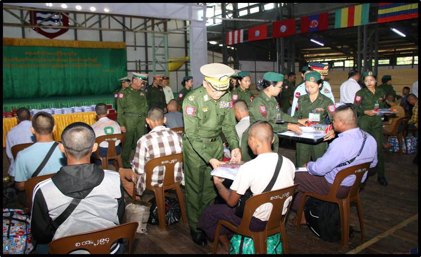 ပြည်သူ့စစ်မှုထမ်းသင်တန်း အမှတ်စဉ် (၁၉) သို့ တက်ရောက်မည့် ဧရာဝတီတိုင်းဒေသကြီးအတွင်းမှ နိုင်ငံ့သားကောင်းရတနာများအား ယနေ့နံနက်ပိုင်းတွင် တိုင်းဒေသကြီးဝန်ကြီးချုပ် ဦးတင်မောင်ဝင်း၊ အနောက်တောင်တိုင်းစစ်ဌာနချုပ်တိုင်မှူး ဗိုလ်ချုပ်စိုးကျော်ထက်နှင့် တာဝန်ရှိသူများက ပုသိမ်တပ်နယ်အားကစားခန်းမ၌ သွားရောက်တွေ့ဆုံသည်။