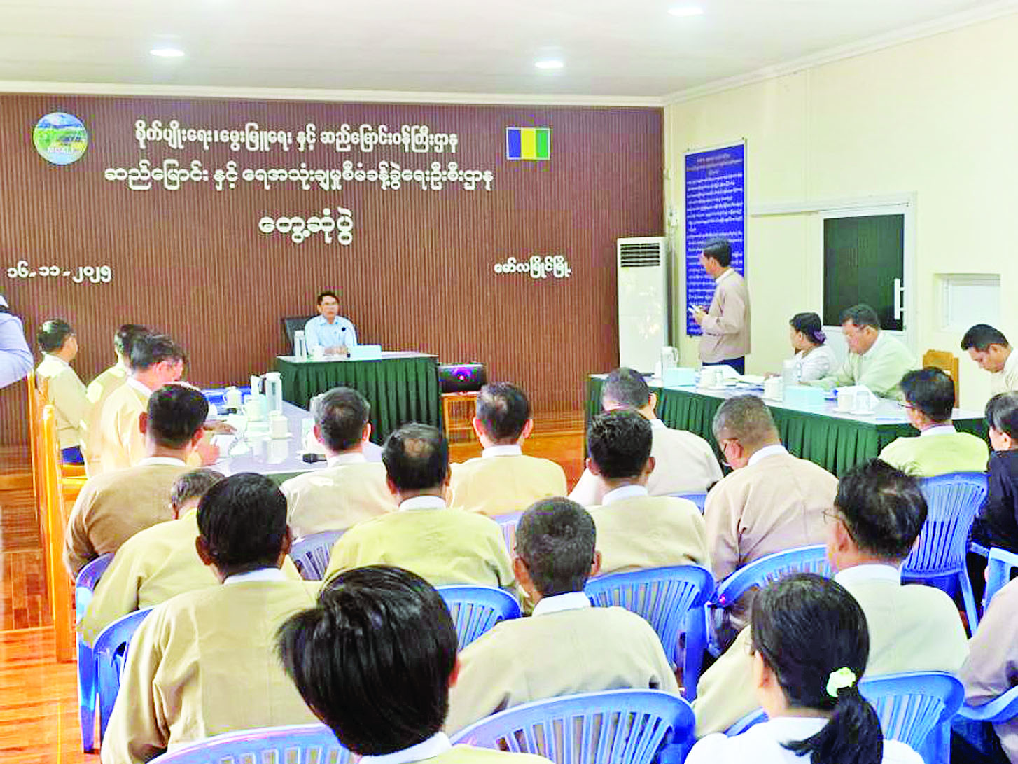 စိုက်ပျိုးရေး၊ မွေးမြူရေးနှင့်ဆည်မြောင်းဝန်ကြီးဌာန ပြည်ထောင်စုဝန်ကြီး ဦးမင်းနောင်သည် ယမန်နေ့နံနက်ပိုင်းတွင် မွန်ပြည်နယ် ဆည်မြောင်းနှင့်ရေအသုံးချမှုစီမံခန့်ခွဲရေးဦးစီးဌာနအစည်းအဝေးခန်းမ၌ ပြည်နယ်၊ ခရိုင်နှင့် မြို့နယ်အဆင့် လယ်ယာကဏ္ဍဆိုင်ရာ တာဝန်ရှိသူများအား တွေ့ဆုံသည်။