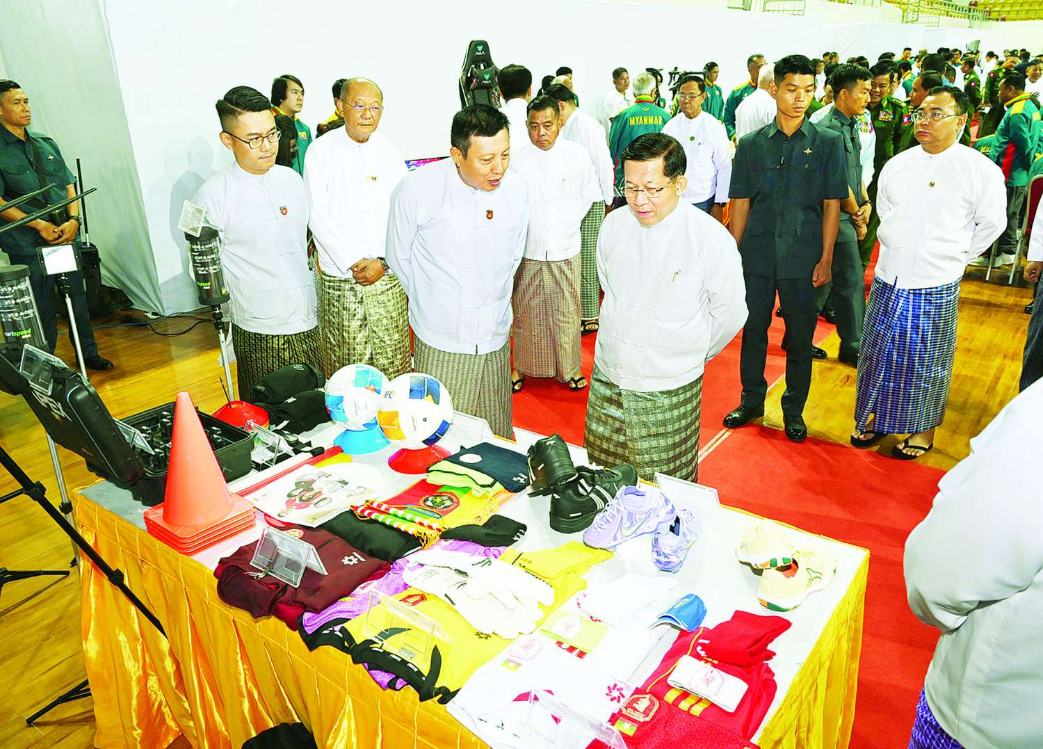 ထိုင်းနိုင်ငံတွင် ကျင်းပပြုလုပ်မည့် (၃၃)ကြိမ်မြောက် အရှေ့တောင်အာရှအားကစားပြိုင်ပွဲသို့ ဝင်ရောက်ယှဉ်ပြိုင်မည့် မြန်မာအားကစားအဖွဲ့အား အောင်နိုင်ရေးအလံအပ်နှင်းပွဲအခမ်းအနားကို ယနေ့နံနက်ပိုင်းတွင် နေပြည်တော်ရှိ ဝဏ္ဏသိဒ္ဓိအားကစားရုံ(A)၌ ကျင်းပရာ နိုင်ငံတော်ယာယီသမ္မတ နိုင်ငံတော်လုံခြုံရေးနှင့် အေးချမ်းသာယာရေးကော်မရှင် ဥက္ကဋ္ဌ ဗိုလ်ချုပ်မှူးကြီး မင်းအောင်လှိုင် တက်ရောက်အမှာစကားပြောကြားပြီး အောင်လံရေးအလံကို အပ်နှင်းသည်။