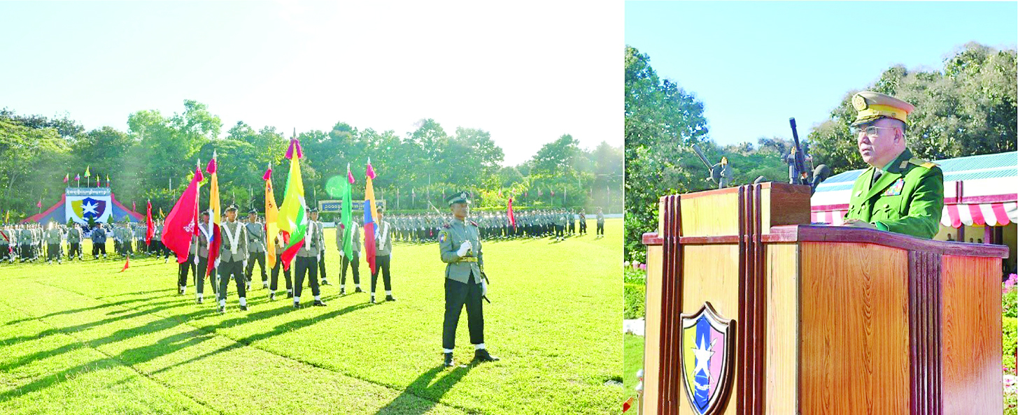 မြန်မာနိုင်ငံ ရဲတပ်ဖွဲ့သည် “နိုင်ငံတော်တွင် အရေးကြုံတိုင်းနောင်တော်တပ်မတော်နှင့် တစ်စိတ်တစ်ဝမ်းတည်း လက်တွဲ၍ ကာကွယ်စောင့်ရှောက်ခဲ့သည့် တပ်ဖွဲ့ဖြစ်သည်” ဟူသည့် အစဉ်အလာကောင်းနှင့်အညီ တပ်မတော်နှင့်အတူ နယ်မြေခံပြည်သူ့စစ်အဖွဲ့၊ ပြည်သူ့လုံခြုံရေးနှင့် အကြမ်းဖက်နှိမ်နင်းရေးအဖွဲ့၊ ဒေသခံပြည်သူလူထုနှင့် လက်တွဲပြီး တည်ငြိမ်အေးချမ်းမှု ပျက်ပြားနေသည့် နေရာဒေသများတွင် တည်ငြိမ်အေးချမ်းမှု ပြန်လည်ရရှိအောင် ဆောင်ရွက်လျက်ရှိကြောင်း၊ ပြည်သူလူထု၏ အသက်အိုးအိမ်စည်းစိမ်များကို ဆိုးရွားစွာထိခိုက်ပျက်စီးစေသည့် အကြမ်းဖက်မှုများကိုနှိမ်နင်းရာ တွင် ရဲစွမ်းသတ္တိအရင်းခံ၍ ရန်သူအပေါ် ပြုကျင့်ရမည့်ကျင့်ဝတ် ငါးပါးမှ ပဉ္စမအချက်ဖြစ်သည့် “ရန်သူ၏ စိတ်ဓာတ်ကို ယတိပြတ်ချိုးနှိမ်၍ အပြီးသတ်အောင်ပွဲခံယူပါ” ဆိုသည့် ကျင့်ဝတ်နှင့်အညီ ကျင့်ကြံကြိုးပမ်းဆောင်ရွက်ကြရမည်ဖြစ်ကြောင်း။