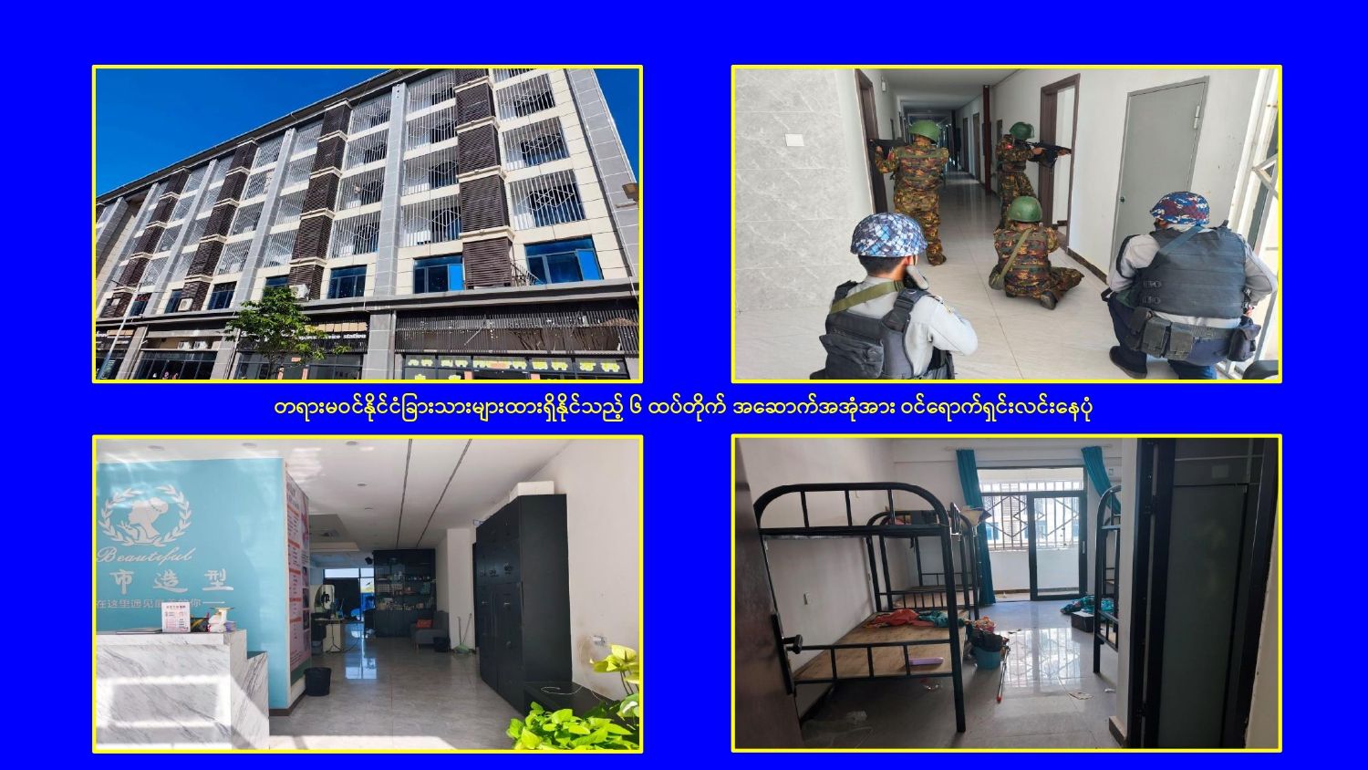 ထို့ပြင် ရွှေကုက္ကိုလ်နယ်မြေအတွင်း အွန်လိုင်းလိမ်လည်မှုများလုပ်ဆောင်ရာတွင် အသုံးပြုခဲ့သည့် အဆောက်အအုံများအား နိုဝင်ဘာ ၁၈ ရက်မှ စတင်စစ်ဆေးခဲ့ရာ ယနေ့အထိ တရားမဝင်အဆောက်အအုံ ၁၄၀ လုံးကို စစ်ဆေးတွေ့ရှိရပြီး အဆိုပါ အဆောက်အအုံများကို ပြန်လည်အသုံးပြုမှုမရှိစေရေးအတွက် သိမ်းဆည်းချိပ်ပိတ်ခြင်းများကို ဆက်လက်ဆောင်ရွက်လျက်ရှိရာ ယနေ့အတွင် တရားမဝင်အဆောက်အအုံ ၁၃ လုံးကို ထပ်မံချိပ်ပိတ်သိမ်းဆည်းနိုင်ခဲ့ပြီး တရားမဝင်အဆောက်အအုံ စုစုပေါင်း ၁၃၂ လုံး ချိပ်ပိတ်သိမ်း ဆည်းပြီးဖြစ်ကြောင်း သိရှိရသည်။