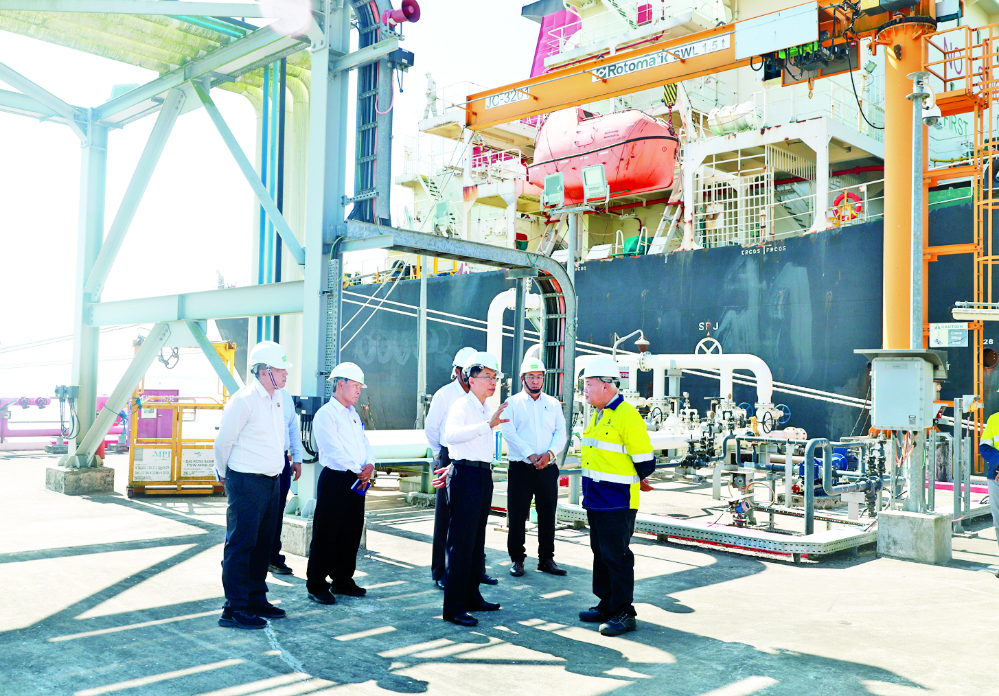 တင်ပြမှုများအပေါ် ပြည်ထောင်စုဝန်ကြီးက သဘာဝဓာတ်ငွေ့ရည်(LNG)မှ ဓာတ်ငွေ့ပြန်လည် ထုတ်ယူသုံးစွဲရာတွင်ထွက်ရှိလာသည့် ဓာတ်ငွေ့မှာ သန့်ရှင်းမှုရှိသည့်အတွက် သဘာဝပတ်ဝန်းကျင် ထိခိုက်မှုအနည်းဆုံးဖြစ်ပါကြောင်း၊ ထို့ပြင် အပူစွမ်းအင်လည်း အလွန်မြင့်မားသည့်အတွက် လျှပ်စစ်ဓာတ်အားပိုမို၍ ထွက်ရှိနိုင်မည်ဖြစ်ပါကြောင်း၊ ယနေ့ LNG ကို ကမ္ဘာ့နိုင်ငံများတွင် အဓိကစွမ်းအင်အရင်း အမြစ်တစ်ခုအဖြစ် အသုံးပြုနေကြရာ လာမည့်ဆယ်စုနှစ်အတွင်း LNG သုံးစွဲမှုသည် များစွာတိုးမြင့်လာမည် ဟု ခန့်မှန်းထားရှိပါကြောင်း၊ မိမိတို့နိုင်ငံအနေဖြင့် LNG အသုံးပြုသည့် နည်းပညာပိုင်းနှင့်ပတ်သက်၍ လေ့လာသင်ယူပြီး ကိုယ်တိုင်ဆောင်ရွက်နိုင်ရန် ကြိုးပမ်းဆောင်ရွက်လျက်ရှိပါကြောင်း ပြောကြားပြီး သဘာဝဓာတ်ငွေ့ရည်သိုလှောင်သင်္ဘောနှင့် သဘာဝဓာတ်ငွေ့ရည် (LNG) ကို သဘာဝဓာတ်ငွေ့ပြန်လည်ပြုလုပ်၍ လျှပ်စစ်ဓာတ်အား ထုတ်လုပ်လျက်ရှိသည့် စက်ရုံလုပ်ငန်းအခြေအနေကို ကြည့်ရှုစစ်ဆေးသည်။