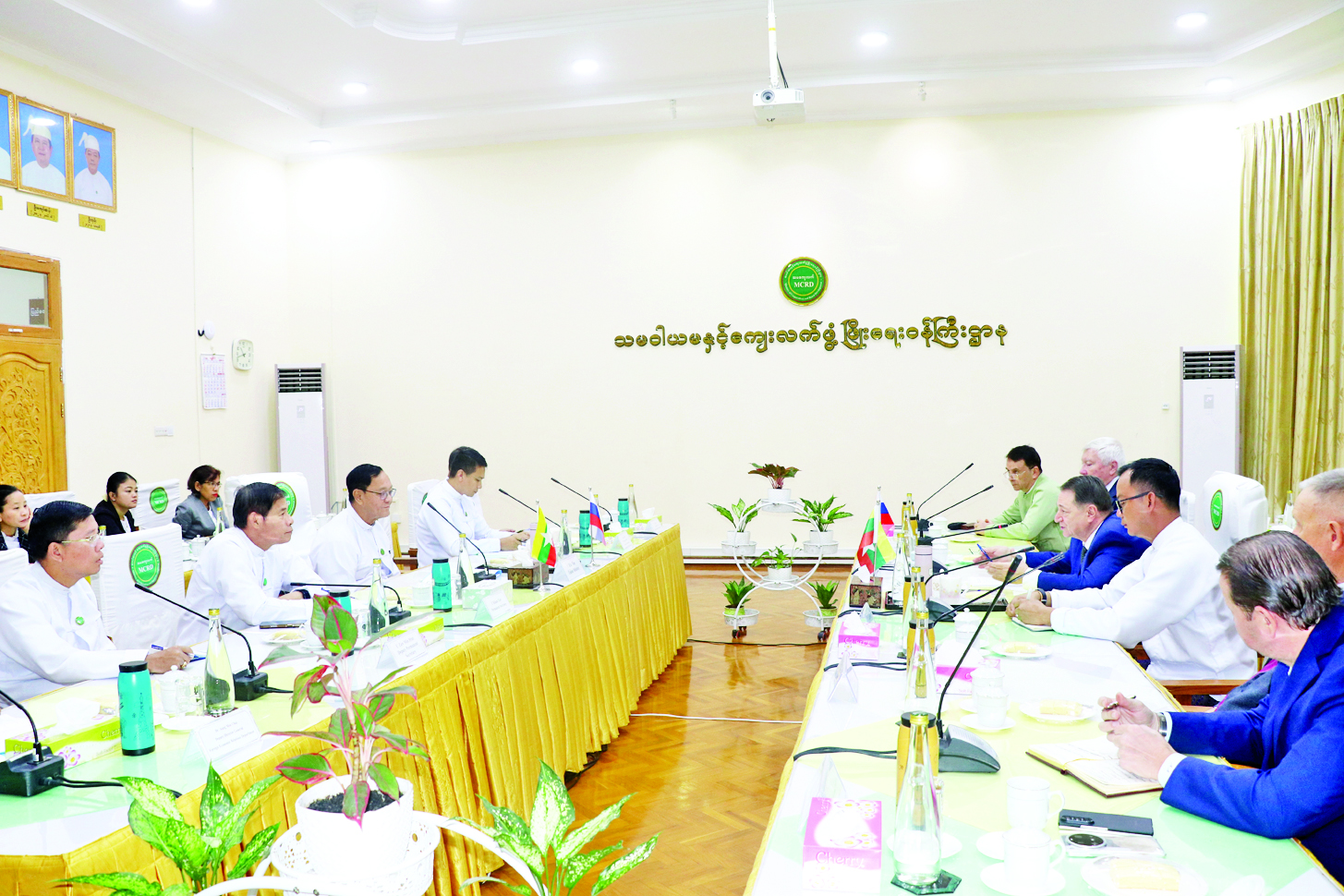 သမဝါယမနှင့်ကျေးလက်ဖွံ့ဖြိုးရေးဝန်ကြီးဌာန ပြည်ထောင်စုဝန်ကြီး ဦးလှမိုးသည် ရုရှားဖက်ဒရေးရှင်းနိုင်ငံ ရော့စ်ကွန်ဂရက်ရင်းနှီးမြှုပ်နှံမှုရန်ပုံငွေအဖွဲ့မှ ကြီးကြပ်ရေးဘုတ်အဖွဲ့ဝင် မစ္စတာဆာဂေးရှတီရော့ဗ်ဦးဆောင်သည့် ကိုယ်စားလှယ်အဖွဲ့အား ယနေ့နံနက်ပိုင်းက ပြည်ထောင်စုဝန်ကြီးရုံးဧည့်ခန်းမ၌ လက်ခံတွေ့ဆုံသည်။