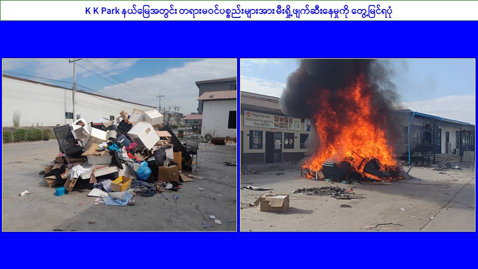 ၎င်းအပြင် မြဝတီမြို့နယ်အတွင်းရှိ KK Park နယ်မြေနှင့် ရွှေကုက္ကိုလ်နယ်မြေတို့၌ အွန်လိုင်းလိမ်လည်လောင်းကစားမှုကျူးလွန်ရာတွင် အသုံးပြုသည့်ပစ္စည်းများအား ထပ်မံ၍ အသုံးပြုနိုင်ခြင်းမရှိစေရန်အတွက် ယနေ့တွင်လည်း စနစ်တကျမီးရှို့ဖျက်ဆီးခဲ့ကြောင်း သိရှိရသည်။