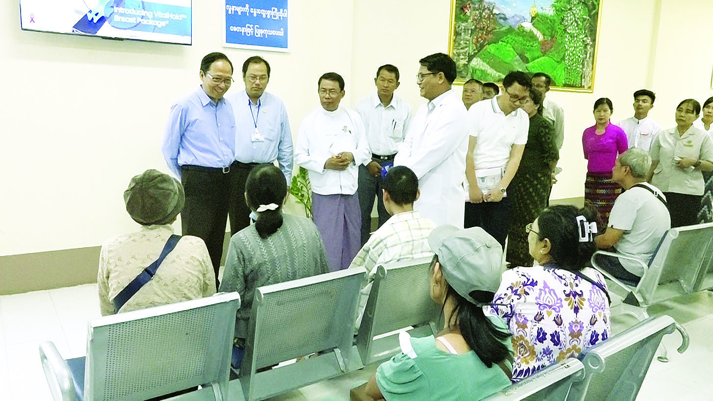 အမျိုးသားကင်ဆာရောဂါကုသရေးဌာနကို နိုင်ငံတော်၏ ခွင့်ပြုရန်ပုံငွေဖြင့် စီမံကိန်းအကောင်အထည်ဖော်ဆောင်ရွက်ခဲ့ကာ ရှစ်ထပ်ကုသဆောင်တည်ဆောက်ရေးနှင့် ဆက်စပ်လုပ်ငန်းများကို ဆောက်လုပ်ရေးဝန်ကြီးဌာန၊ အဆောက်အဦအထူးအဖွဲ့ (၁) မှ တာဝန်ယူကာ ဆက်လက်ဆောက်လုပ်လျက်ရှိပြီး အမျိုးသားကင်ဆာရောဂါကုသရေးဌာနတွင် စုစုပေါင်းစက်သုံးလုံးဖြင့် တစ်ရက်လျှင် ကင်ဆာရောဂါဝေဒနာရှင် လူနာ ၂၀၀ မှ ၂၅၀ ကျော်ကို ဓာတ်ရောင်ခြည်ကုသမှုဆောင်ရွက်ပေးလျက်ရှိပြီး လူနာများ သွားလာရေးနှင့် စားသောက်ရေးအဆင်ပြေစေရန် ရန်ကုန်တိုင်းဒေသကြီးအစိုးရအဖွဲ့နှင့် ဆေးရုံကြီးကြပ်ရေးအဖွဲ့က ဆောင်ရွက်ပေးလျက်ရှိကြောင်း သိရသည်။