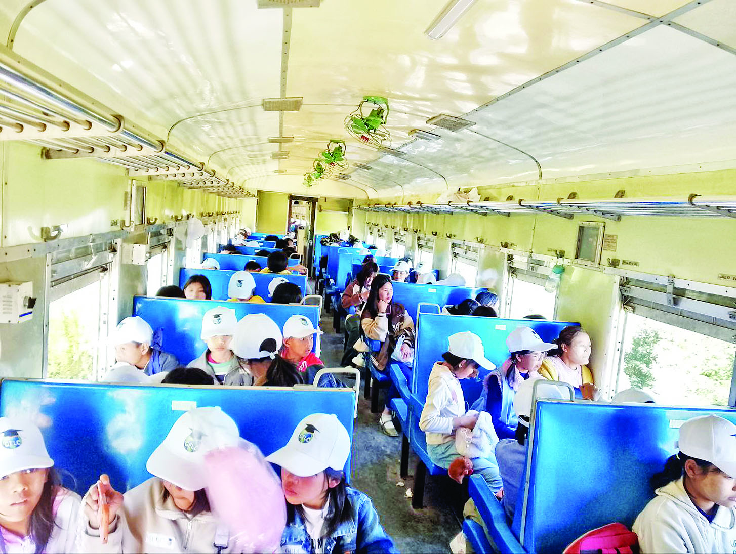 ယနေ့ နံနက် ၉ နာရီတွင် တောင်ကြီးဘူတာမှ စတင်ပြေးဆွဲသည့် ရထားခရီးစဉ်တွင် တောင်ကြီးတက္ကသိုလ်မှ ဆရာ ဆရာမ ၁၂ ဦး၊ အေးသာယာမြို့နယ် အစိုးရနည်းပညာကောလိပ် (GTC) မှ ကျောင်းသား ကျောင်းသူ ၅၀၊ အောင်ပန်းမြို့ရှိ GELC ကိုယ်ပိုင်အလယ်တန်းကျောင်းမှ ဆရာ ဆရာမနှင့် ကျောင်းသား ကျောင်းသူ ၆၂ ဦးနှင့် အများပြည်သူ ရထားစီးခရီးသည် ၉၀ စုစုပေါင်း ခရီးသည် ၂၁၄ ဦး လိုက်ပါစီးနင်းကြသည်။ ထို့အတူ ရုံးပိတ်ရက် စနေနေ့ဖြစ်သော ဒီဇင်ဘာ ၆ ရက် ခရီးစဉ်၌ တောင်ကြီးမြို့ရှိ Sure the Children (Shan State NGO)မှ ၃၀၊ ကန်ကြီးရပ်ကွက် အဖွဲ့သူအဖွဲ့သားများ ၆၀ နှင့် အများပြည်သူ ရထားစီး ခရီးသည် ၁၂၄ ဦး လိုက်ပါစီးနင်းခဲ့ကြသည်။
