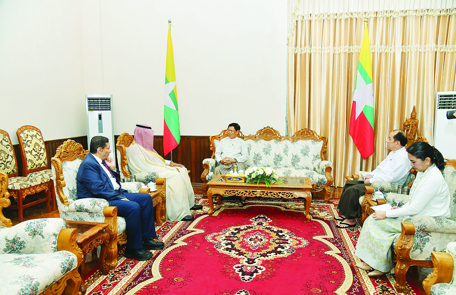 ပြည်ထောင်စုဝန်ကြီး ဦးသန်းဆွေ ဆော်ဒီအာရေဗျ သံအမတ်ကြီး မစ္စတာ ဆာအု(ဒ်) ဘင် အဗ္ဗဒူလာ အယ်လ် စုဘိုင်အား လက်ခံတွေ့ဆုံ