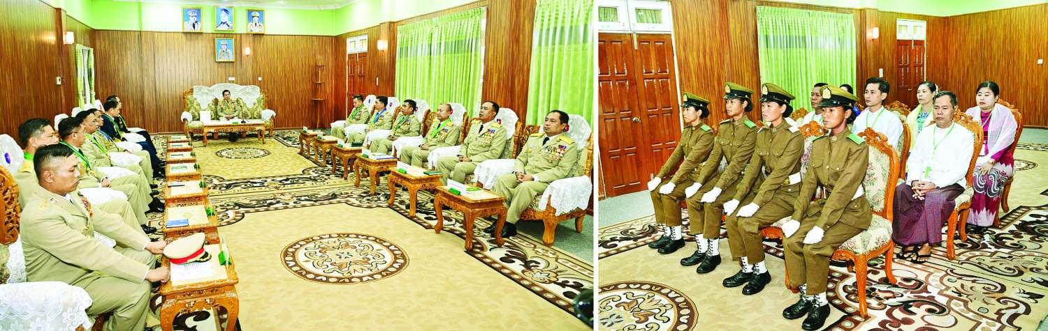 မိမိတို့တပ်မတော်တွင် ထူးချွန်ပြောင်မြောက်သည့် အမျိုးသမီးစစ်မှုထမ်းများစွာ ပေါ်ပေါက်ခဲ့ပြီး ရာထူးအမျိုးမျိုးဖြင့် ကျရာတာဝန်များကို ကျေပွန်စွာထမ်းဆောင်နိုင်ခဲ့ကြသကဲ့သို့ ပေးအပ်လာမည့်တာဝန်များကို နိုင်ငံတော်နှင့် နိုင်ငံသားတို့အတွက် ကျေပွန်အောင် ကြိုးပမ်းထမ်းဆောင်သွားကြရန်၊ စစ်စည်းကမ်းကို တိကျစွာလိုက်နာပြီး အမိန့်နာခံမှုအားကောင်းသည့် အထက်အောက် ယုံကြည်ကိုးစားရသူများ ဖြစ်အောင်ကြိုးပမ်းသွားကြရန်၊ ခေါင်းဆောင်မှုအင်္ဂါရပ်များနှင့်အညီ ကြိုးစားနေထိုင်ကြကာ ပေးအပ်လာသည့် ရည်မှန်းချက်တာဝန်များအပေါ် ကိုယ်စွမ်းဉာဏ်စွမ်းရှိသမျှ ဆောင်ရွက်ကြပြီး တပ်မတော်၏ဂုဏ်ကိုဆောင်နိုင်သည့် အရာရှိများဖြစ်အောင်ကြိုးပမ်းကြရန်၊ ဖွဲ့စည်းပုံအခြေခံဥပဒေ၏အနှစ်သာရ၊ ပြည်တွင်းတည်ငြိမ်အေးချမ်းခြင်း၏ တန်ဖိုးများကို ကိုယ်တိုင်နားလည်သိရှိပြီး နိုင်ငံတော်နှင့် တပ်မတော်က အားထားရသည့် အမျိုးသမီးအရာရှိကောင်းများဖြစ်အောင် ဆက်လက်ကြိုးပမ်းဆောင်ရွက်သွားကြရန် တိုက်တွန်းလိုကြောင်းဖြင့် ပြောကြားသည်။
