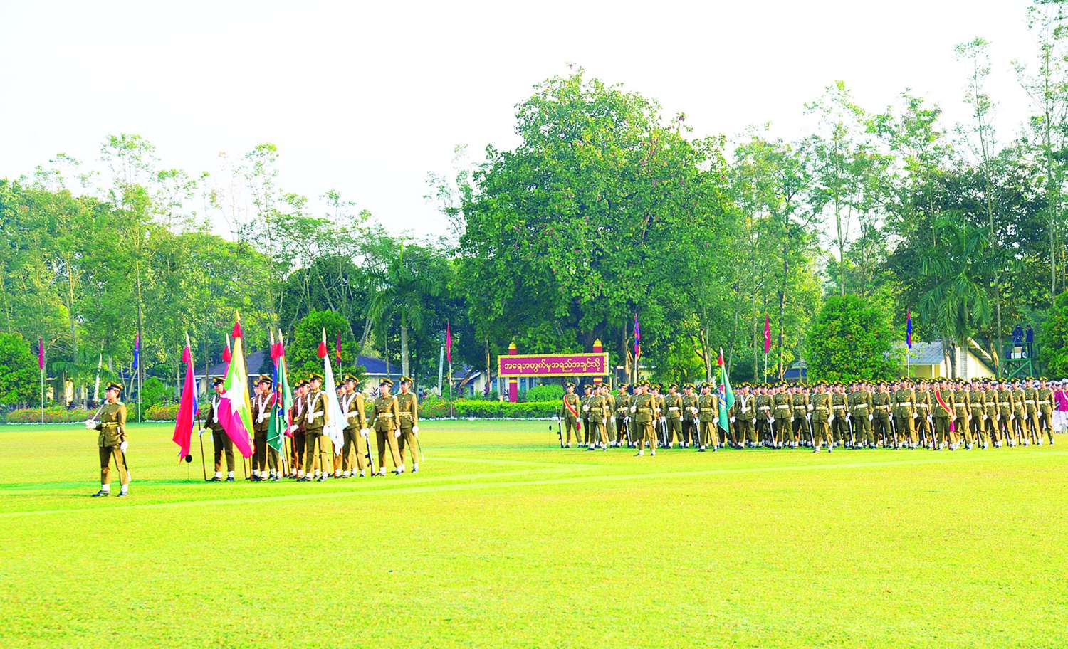 တပ်မတော်တစ်ရပ်အရည်အချင်းပြည့်ဝရန်အတွက် လေ့ကျင့်ရေးသည် မရှိမဖြစ်လိုအပ်သည့် အခြေခံအုတ်မြစ်ဖြစ်သကဲ့သို့ အရေးအကြီးဆုံးလုပ်ငန်းတာဝန်လည်းဖြစ်ကြောင်း၊ သင်တန်းကျောင်းက လေ့ကျင့်သင်ကြားပေးလိုက်သည့် အတတ်ပညာများကို လေ့လာ၊ လေ့ကျင့်၊ လိုက်နာ ဆိုသည့် မူဝါဒအတိုင်း ပြောင်းလဲတိုးတက်နေသည့် စစ်အတတ်ပညာများကို အမြဲမပြတ်လေ့လာပြီး ပိုမိုကျွမ်းကျင်လာအောင် အမြဲလေ့ကျင့်နေရမည့်အပြင် ချမှတ်ထားသည့် စည်းမျဉ်းစည်းကမ်းများကိုလည်း အမြဲလိုက်နာကျင့်သုံးနေကြရမည်ဖြစ်ကြောင်း၊ ထိုသို့လေ့ကျင့်သားပြည့်ဝစွာ ဆောင်ရွက်နိုင်စေရေး တစ်ဦးချင်းအနေဖြင့် ကျန်းမာကြံ့ခိုင်နေရမည်ဖြစ်သည့်အတွက် ကျန်းမာရေးနှင့် ညီညွတ်သည့် နေထိုင်စားသောက်မှုရှိရန်လိုအပ်ကြောင်း၊ ထို့ကြောင့် တာဝန်ထမ်းဆောင်မည့် နေရာအသီးသီးရောက်သည့်အခါ လေ့ကျင့်သားပြည့်ဝနေရန်အတွက် “ကျန်းမာအောင်နေ၊ သန်စွမ်းအောင်လေ့ကျင့်” ဆိုသည့်အတိုင်း ကိုယ်စီလိုက်နာဆောင်ရွက်ကြရန် တိုက်တွန်းမှာကြားလိုကြောင်း။