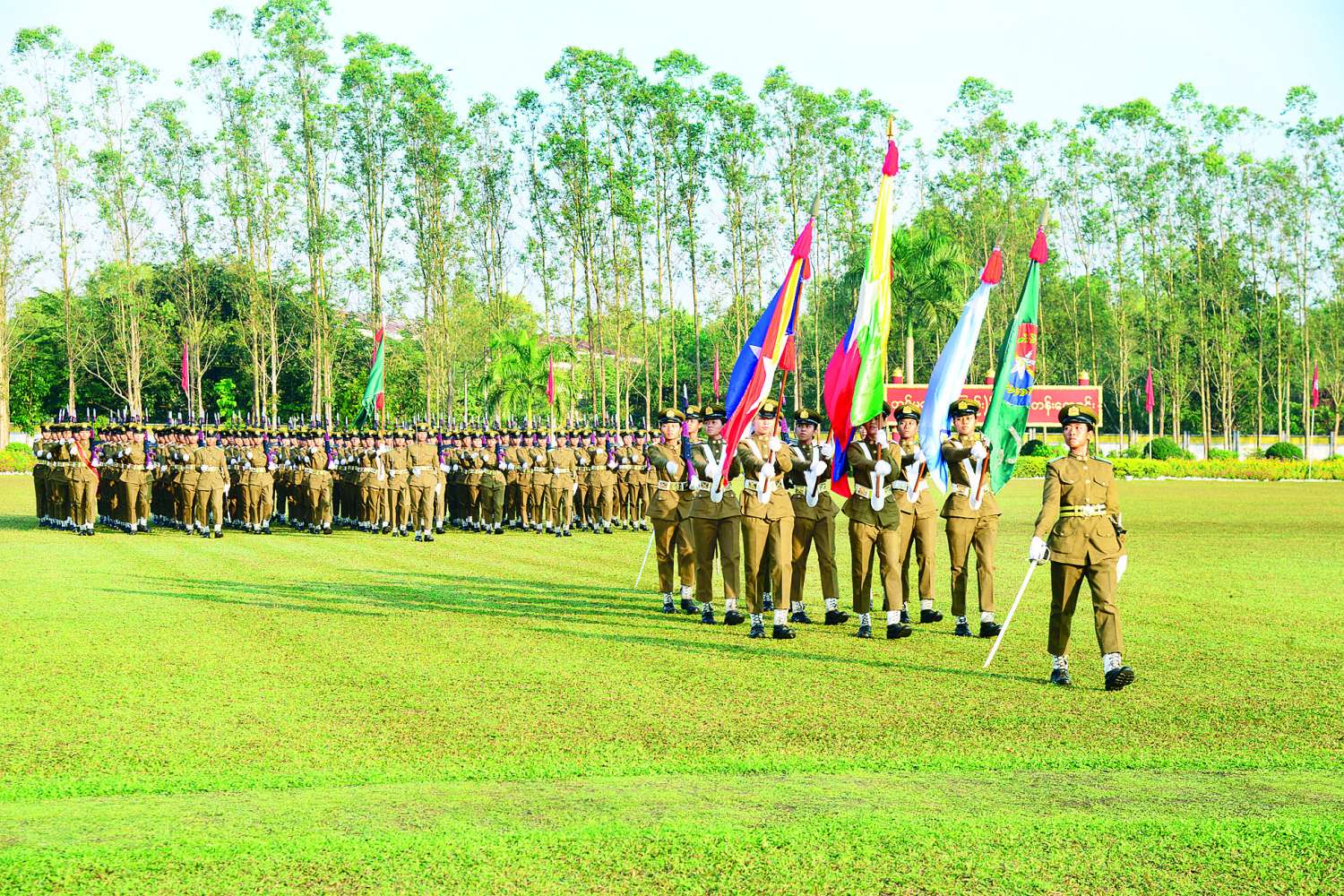 တပ်မတော်အနေဖြင့်လည်း အမျိုးသမီးတပ်ဖွဲ့ဝင်များကို နိုင်ငံတော်ကာကွယ်ရေးတာဝန်များတွင် အမျိုးသားစစ်သည်များနှင့် တန်းတူပါဝင်ဆောင်ရွက်နိုင်ရန်အတွက် တပ်မတော်(ကြည်း) ဗိုလ်သင်တန်းကျောင်း(မှော်ဘီ)ကို ဖွင့်လှစ်ခဲ့ပြီး လေ့ကျင့်မွေးထုတ်ပေးလျက်ရှိခြင်းကြောင့် ယခုအခါ တပ်မတော်(ကြည်း၊ ရေ၊ လေ)နှင့် လက်ရုံးတပ်ဖွဲ့များတွင် အမျိုးသမီးအရာရှိ ၉၀၀ ကျော် တာဝန်ထမ်းဆောင်နေကြပြီး အချို့အမျိုးသမီးတပ်ဖွဲ့ဝင်များသည် ကြမ်းတမ်းခက်ခဲသည့်အထူးတာဝန်တပ်ဖွဲ့ (အမျိုးသမီး)တာဝန်၊ စစ်ရေယာဉ်များပေါ်တွင် လိုက်ပါပြီး ပိုင်နက်ရေပြင်ကာကွယ်ရေးတာဝန်၊ အမျိုးသမီးလေသူရဲပျံသန်းရေးတာဝန်၊ လေထီးစစ်သမီးတာဝန်များနှင့် နယ်လှည့်ဆေးကုသရေးတာဝန်များကို ရဲဝံ့ပြောင်မြောက်စွာ ထမ်းဆောင်နေကြသည့်အပြင် နိုင်ငံပေါင်းစုံပါဝင်သည့် ပူးပေါင်းလေ့ကျင့်ခန်းများနှင့် တပ်မတော်အဆင့် အားကစားပြိုင်ပွဲများတွင်လည်း ဆုတံဆိပ်များဆွတ်ခူးရရှိသည်အထိ စွမ်းဆောင်နိုင်ခဲ့ကြသည်ကိုလည်း တွေ့မြင်ရမည်ဖြစ်ကြောင်း။