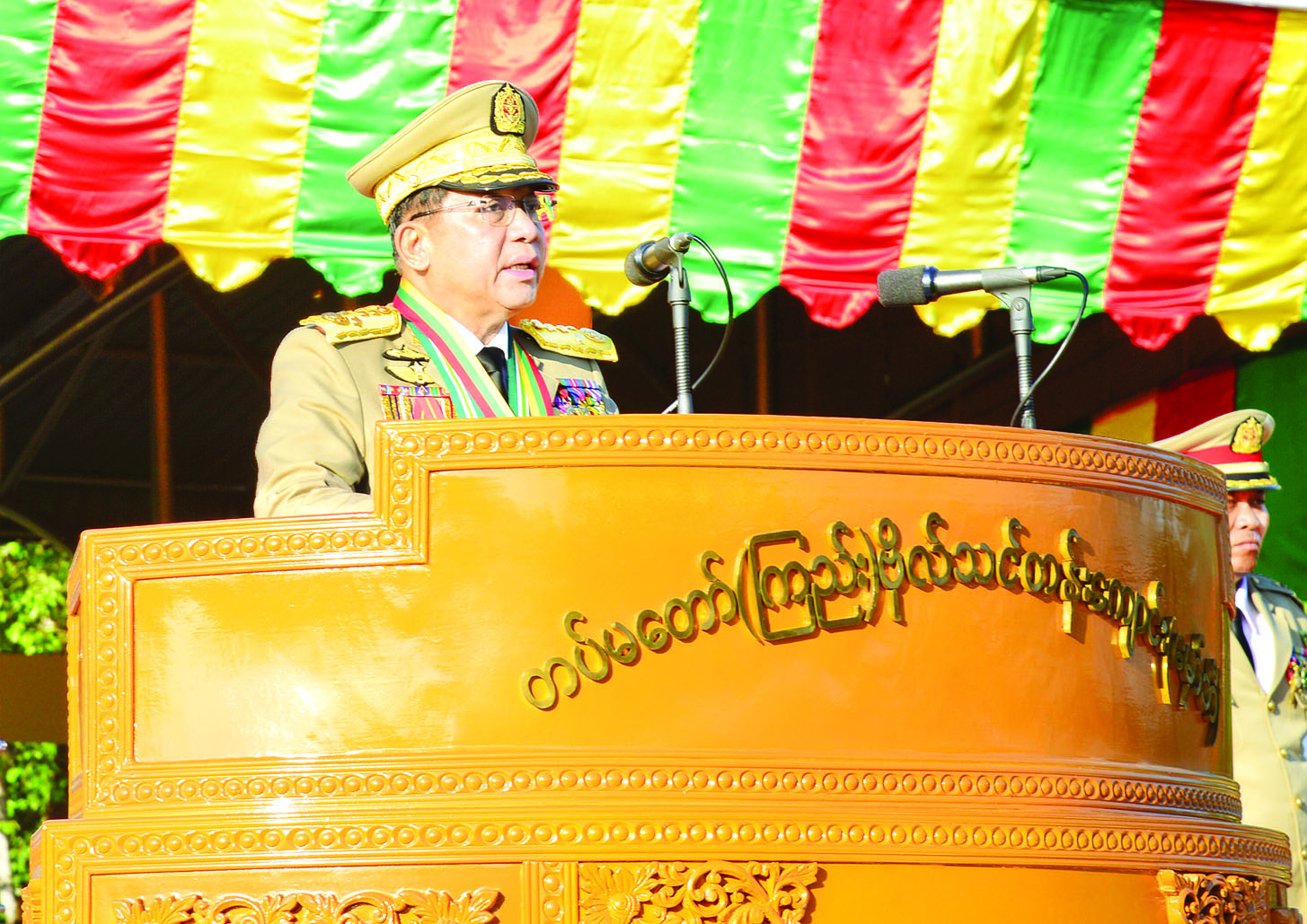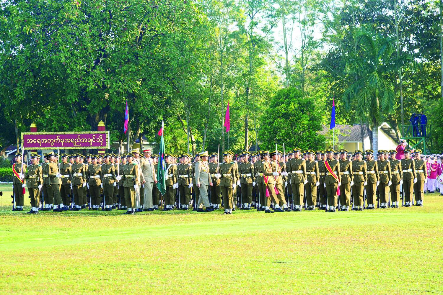 တပ်မတော်၏ အမျိုးသမီးစစ်မှုထမ်းများ၏ အခန်းကဏ္ဍကို အားသစ်လောင်းမည့် ဘွဲ့ရအမျိုးသမီးဗိုလ်လောင်းသင်တန်း အမှတ်စဉ်(၁၂) သင်တန်းဆင်းဂုဏ်ပြုစစ်ရေးပြအခမ်းအနားကို ယနေ့နံနက်ပိုင်းတွင် ရန်ကုန်မြို့ရှိ တပ်မတော်(ကြည်း) ဗိုလ်သင်တန်းကျောင်း(မှော်ဘီ)စစ်ရေးပြကွင်း၌ ကျင်းပပြုလုပ်ရာ နိုင်ငံတော်လုံခြုံရေးနှင့် အေးချမ်းသာယာရေးကော်မရှင်ဥက္ကဋ္ဌ တပ်မတော်ကာကွယ်ရေးဦးစီးချုပ် ဗိုလ်ချုပ်မှူးကြီးသတိုးမဟာသရေစည်သူ သတိုးသီရိသုဓမ္မ မင်းအောင်လှိုင် တက်ရောက်မိန့်ခွန်း ပြောကြားသည်။