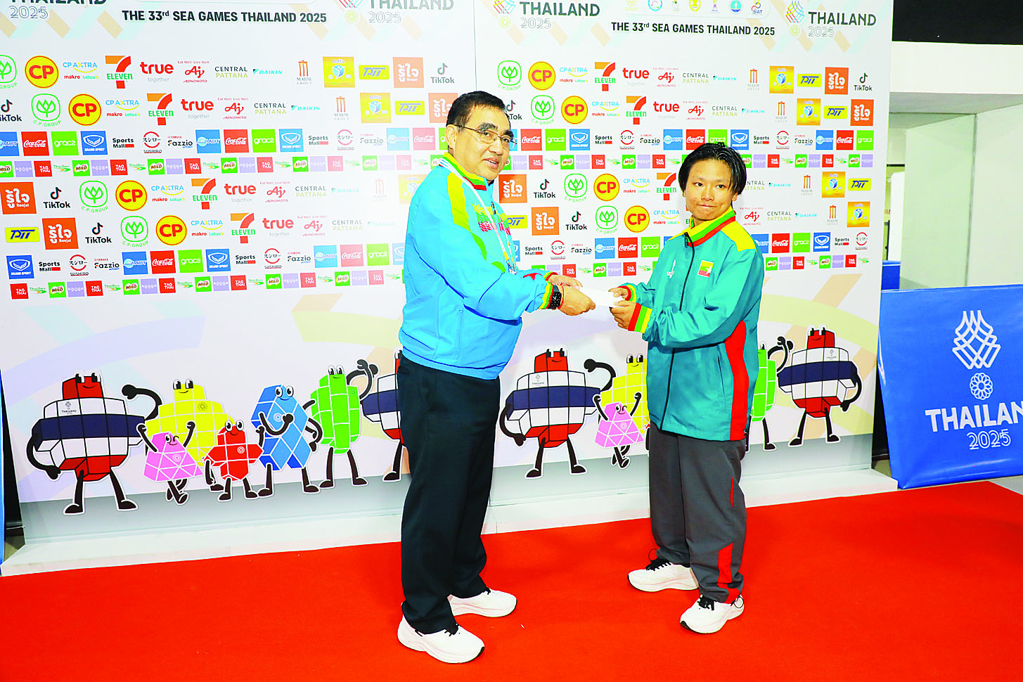 ကစ်ဘောက်ဆင် အားကစားနည်း Point Fighting –50 kg ပြိုင်ပွဲတွင် မြန်မာအသင်းမှ လင်းစန္ဒာဌေးနှင့် K1 –52 kg ပြိုင်ပွဲတွင် မေသဇင်ထူးတို့က ငွေတံဆိပ်ဆုများကို ထပ်မံ ဆွတ်ခူး ရယူပေးနိုင်ခဲ့သည့်အတွက် ဒုတိယဝန်ကြီး ဦးထိန်လင်းက USD $ 200 စီနှင့် ဒုတိယဝန်ကြီး ဦးအောင်ကျော်ထွန်းက မြန်မာ့အားကစားအောင်နိုင်ရေးအတွက် ဂုဏ်ပြုချီးမြှင့်သည့် ထိုင်းဘတ်ငွေ ၁၀၀၀၀ ပေးအပ် ချီးမြှင့်ခဲ့သည်။