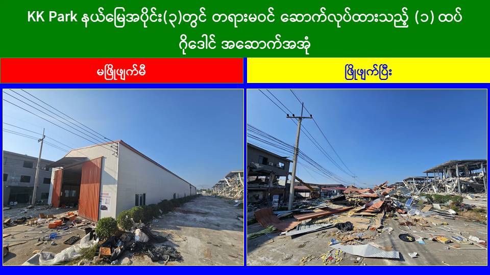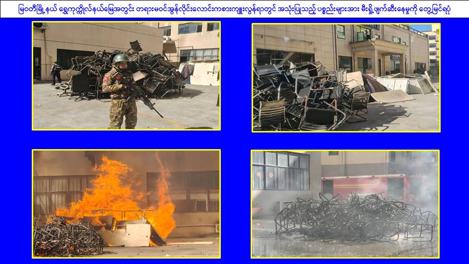 ၎င်းအပြင် မြဝတီမြို့နယ်အတွင်းရှိ KK Park နယ်မြေနှင့် ရွှေကုက္ကိုလ်နယ်မြေတို့၌ အွန်လိုင်းလိမ်လည်လောင်းကစားမှုကျူးလွန်ရာတွင် အသုံးပြုသည့်ပစ္စည်းများအား ထပ်မံ၍ အသုံးပြုနိုင်ခြင်းမရှိစေရန်အတွက် ယနေ့တွင်လည်း စနစ်တကျမီးရှို့ဖျက်ဆီးခဲ့ကြောင်း သိရှိရသည်။