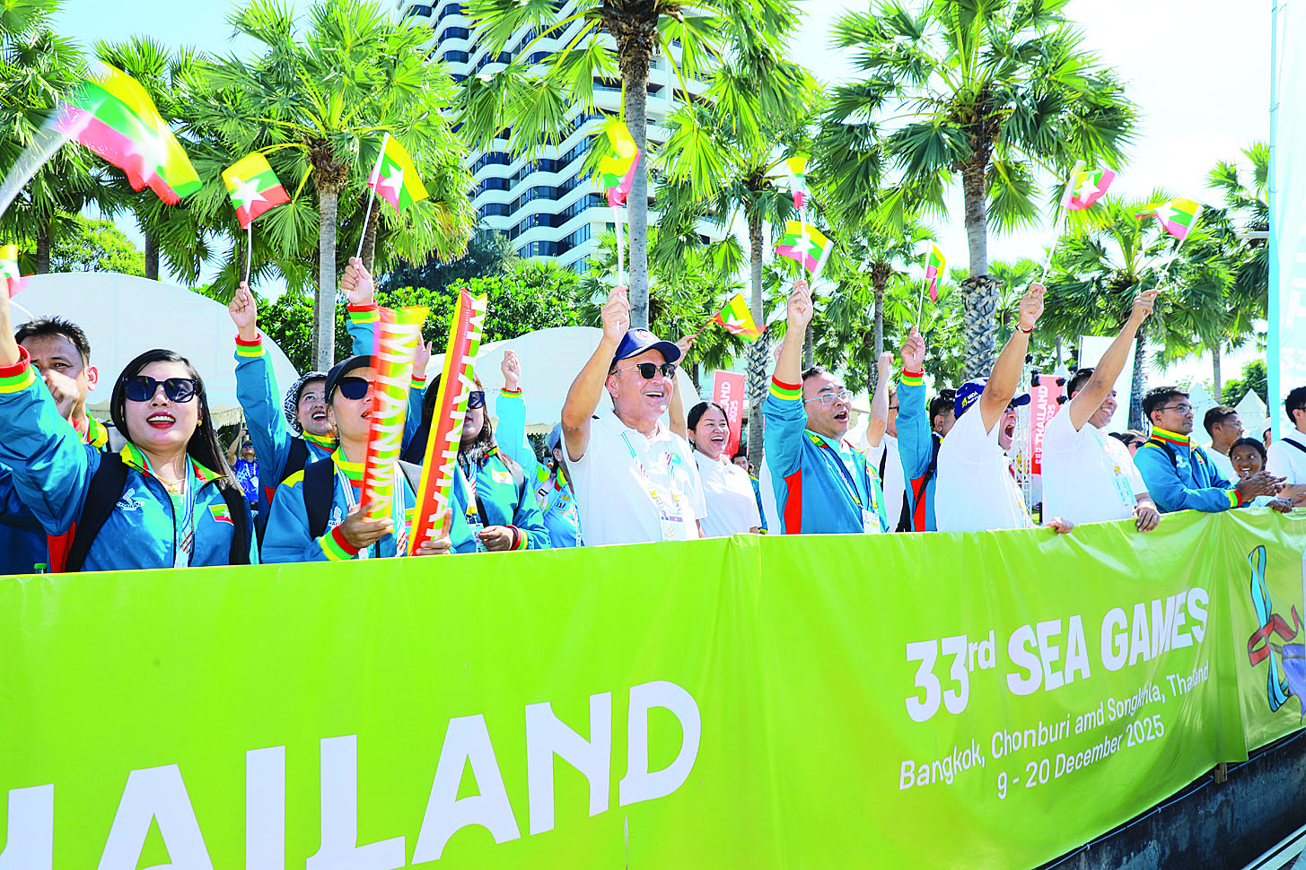 (၃၃)ကြိမ်မြောက် အရှေ့တောင်အာရှအားကစားပြိုင်ပွဲကို ထိုင်းနိုင်ငံ ဘန်ကောက်နှင့် ချွန်ဘူရီမြို့များရှိ သက်ဆိုင်ရာအားကစား ကွင်း၊ အားကစားရုံများ၌ ကျင်းပပြုလုပ်လျက်ရှိပြီး မြန်မာအသင်းအနေဖြင့် ပိုက်ကျော်ခြင်း၊ စကွက်ရ်၊ စက်ဘီး၊ သေနတ်ပစ်၊ စားပွဲတင်တင်းနစ်၊ ကဘာဒီ၊ ခရစ်ကတ်၊ လက်ဝှေ့၊ ဘိလိယက်နှင့် စနူကာ၊ ဖူဆယ်၊ E-sports၊ အပြည်ပြည်ဆိုင်ရာလှေ၊ မြင်းစီး၊ နပန်းနှင့် ရွက်လှေပြိုင်ပွဲများ၌ ဝင်ရောက်ယှဉ်ပြိုင်ခဲ့ရာ ယနေ့နံနက်ပိုင်းတွင် မြန်မာနိုင်ငံ အိုလံပစ်ကော်မတီ အထွေထွေအတွင်းရေးမှူး၊ အားကစားနှင့်လူငယ်ရေးရာဝန်ကြီးဌာန ဒုတိယဝန်ကြီး ဦးထိန်လင်း၊ ပို့ဆောင်ရေးနှင့်ဆက်သွယ်ရေးဝန်ကြီးဌာနဒုတိယဝန်ကြီး ဦးအောင်ကျော်ထွန်း၊ ထိုင်းနိုင်ငံဆိုင်ရာ ပြည်ထောင်စုသမ္မတ မြန်မာနိုင်ငံသံအမတ်ကြီး ဦးဇော်ဇော်စိုးနှင့်၊ စစ်သံမှူးကြီး ဗိုလ်မှူးချုပ်ဝင်းသူလင်းနှင့် ဇနီး၊ မြန်မာအားကစားအဖွဲ့ ခေါင်းဆောင်၊ အားကစားနှင့် ကာယပညာဦးစီးဌာန ညွှန်ကြား ရေးမှူးချုပ်နှင့် အုပ်ချုပ်မှုအဖွဲ့ဝင်များ၊ မြန်မာအားကစားအဖွဲ့ချုပ် ဥက္ကဋ္ဌများနှင့် တာဝန်ရှိသူများ တက်ရောက်ကြည့်ရှုအားပေးကြသည်။