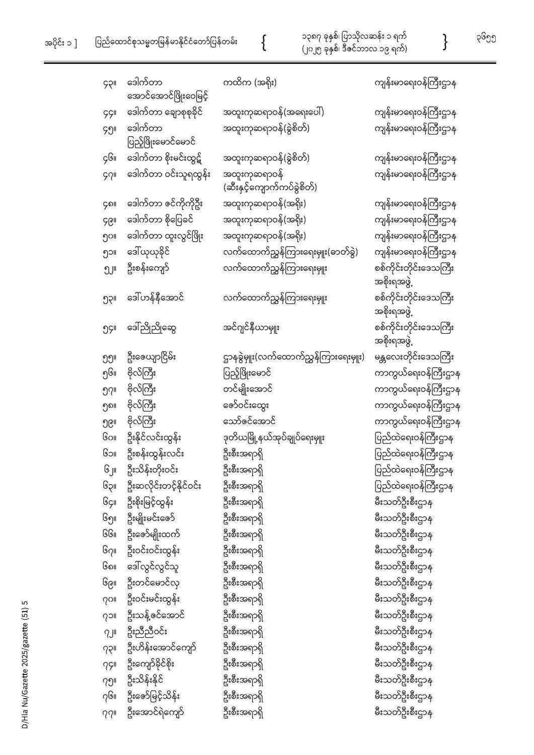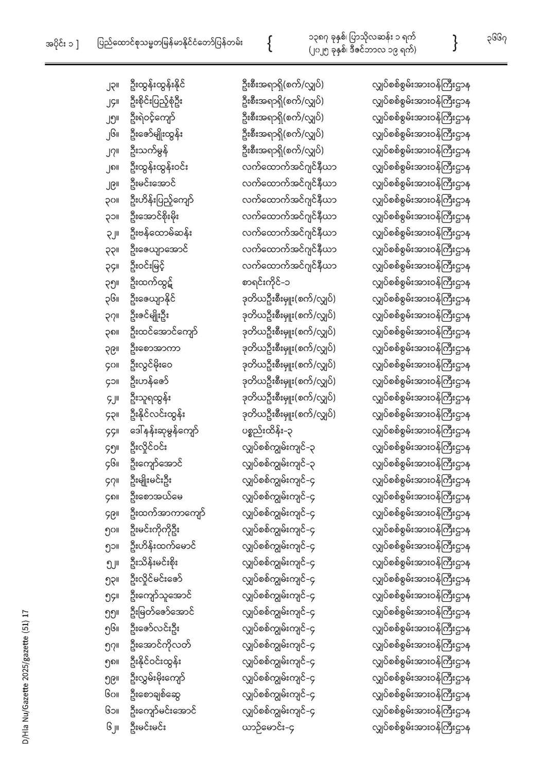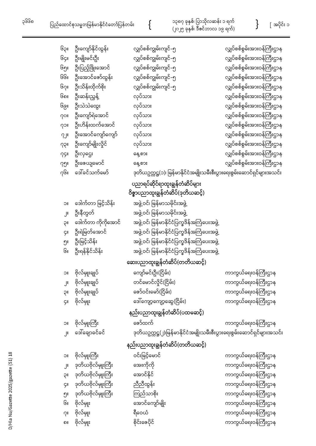 ပြည်ထောင်စုသမ္မတမြန်မာနိုင်ငံတော် ပြန်တမ်း အတွဲ (၇၈) အမှတ် (၅၁) အပိုင်း (၁)