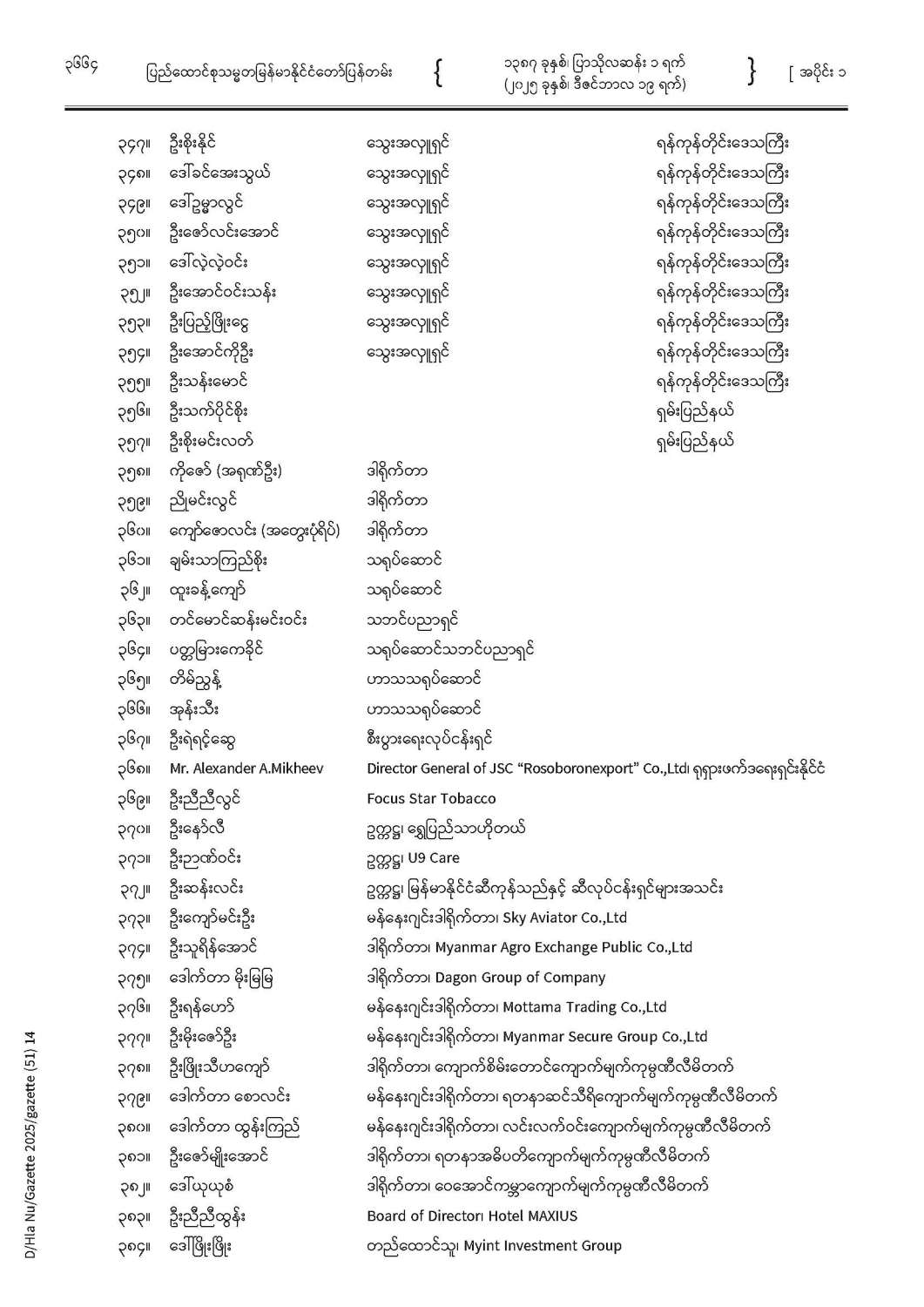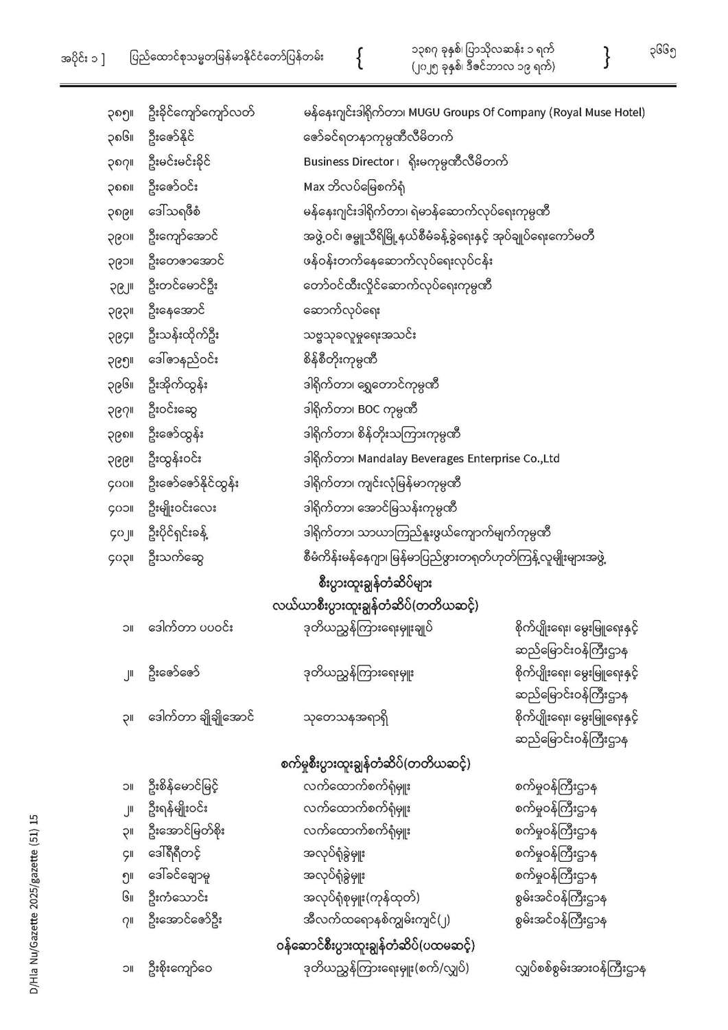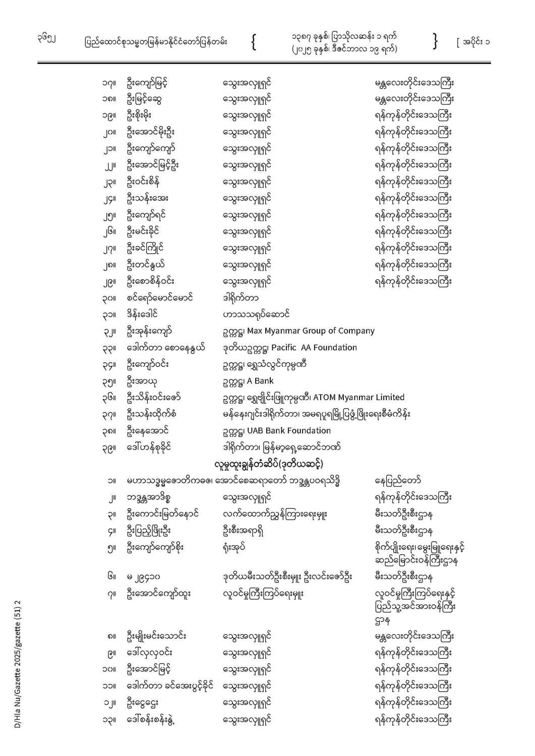 ပြည်ထောင်စုသမ္မတမြန်မာနိုင်ငံတော် ပြန်တမ်း အတွဲ (၇၈) အမှတ် (၅၁) အပိုင်း (၁)