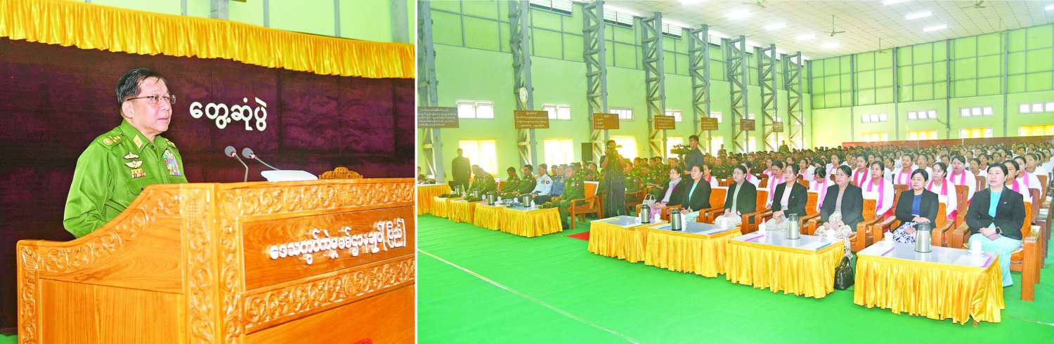 နိုင်ငံတော်လုံခြုံရေးနှင့်အေးချမ်းသာယာရေးကော်မရှင်ဥက္ကဋ္ဌ တပ်မတော်ကာကွယ်ရေးဦးစီးချုပ် ဗိုလ်ချုပ်မှူးကြီး မင်းအောင်လှိုင်သည် ယနေ့နံနက်ပိုင်းတွင် တောင်ပိုင်းတိုင်းစစ်ဌာနချုပ်၊ ပြည်တပ်နယ်ရှိ အရာရှိ၊ စစ်သည်၊ မိသားစုများအား မြဧရာတပ်နယ်ခန်းမ၌ တွေ့ဆုံအမှာစကားပြောကြားသည်။