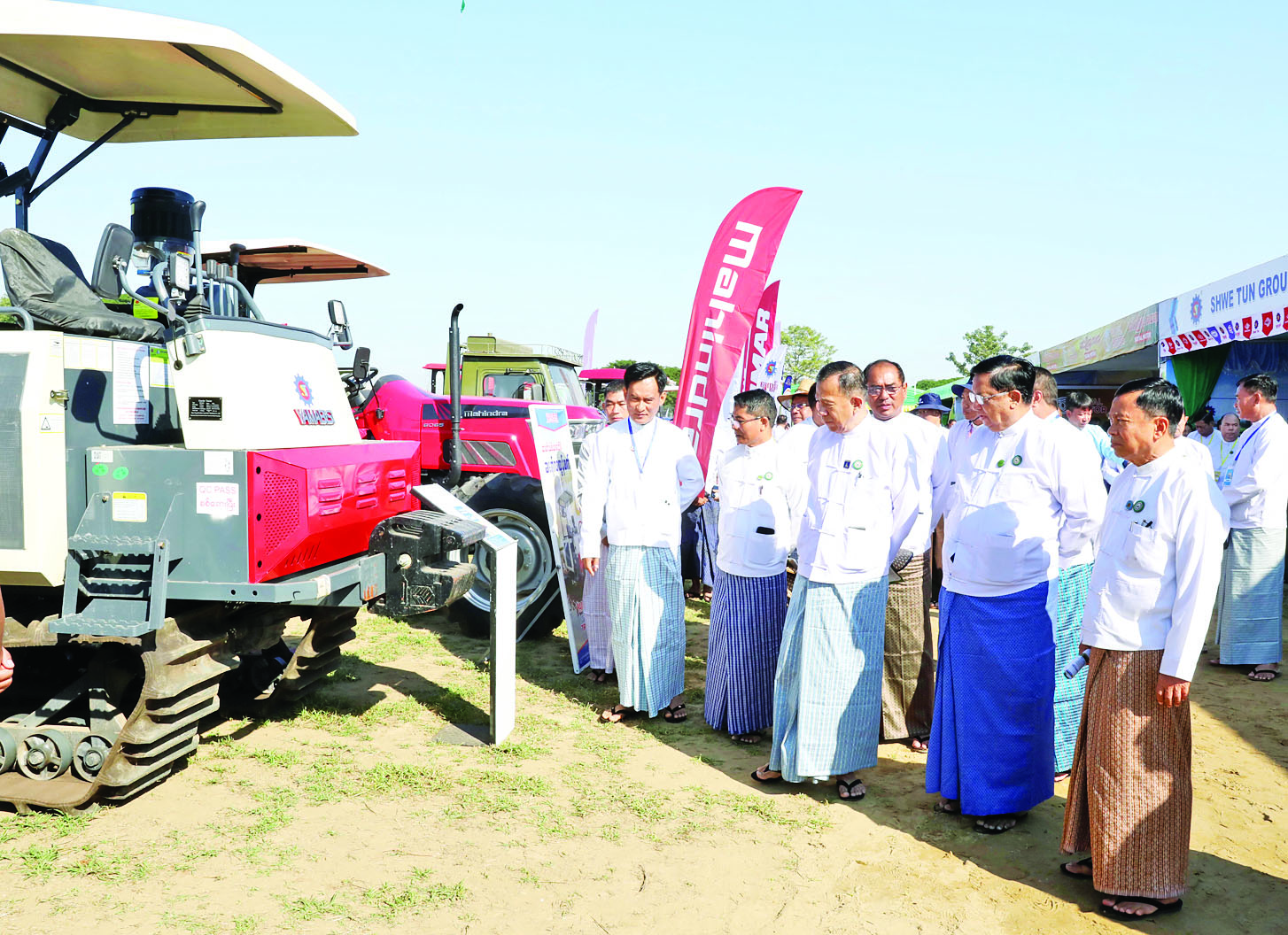ဖွင့်ပွဲအခမ်းအနားအပြီးတွင် ပြည်ထောင်စုဝန်ကြီးများနှင့် တာဝန်ရှိသူများသည် ခင်းကျင်းပြသထားသော လယ်ယာသုံး စက်ကိရိယာပြခန်းများ နှင့် လယ်ယာသုံးစက်ကိရိယာများဖြင့် လက်တွေ့ထွန်ယက်စိုက်ပျိုး သရုပ်ပြသ နေမှုများကို လှည့်လည်ကြည့်ရှုအားပေး ကြသည်။