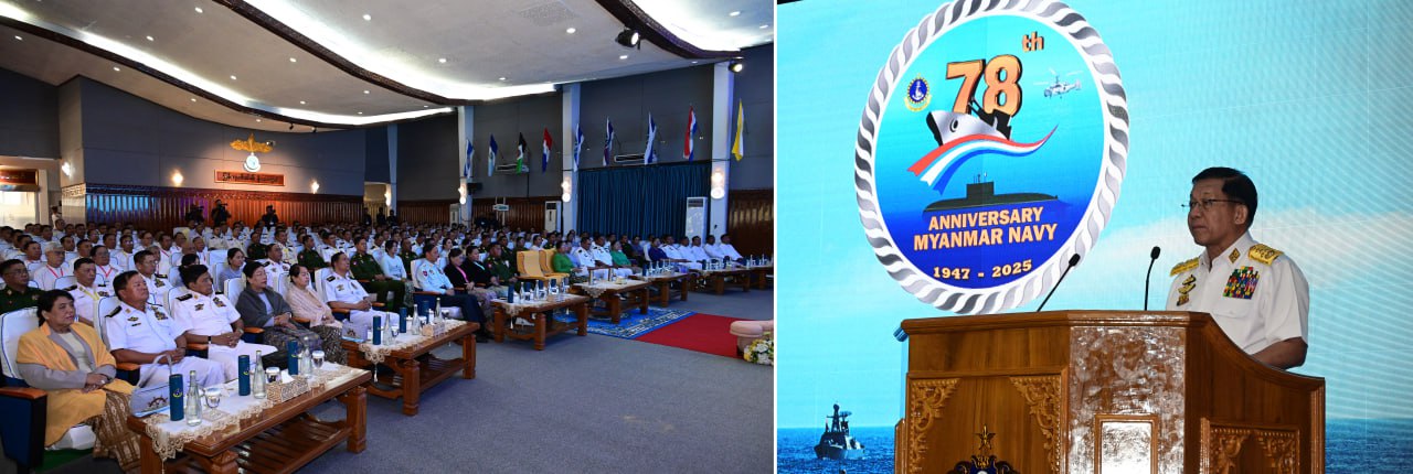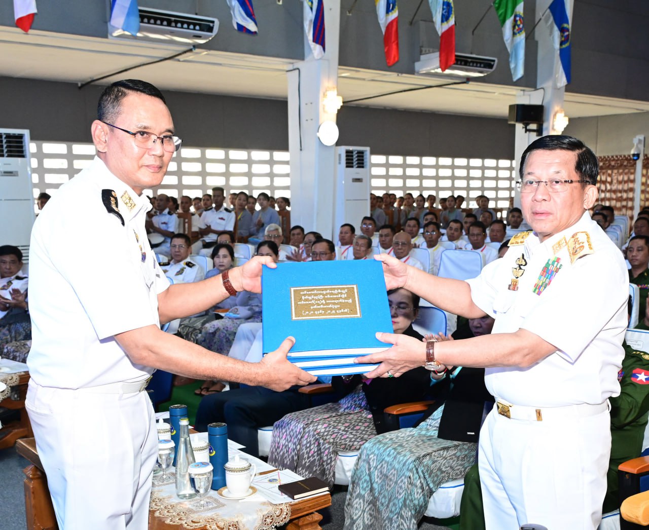 နိုင်ငံတော်လုံခြုံရေးနှင့် အေးချမ်းသာယာရေးကော်မရှင်ဥက္ကဋ္ဌ တပ်မတော်ကာကွယ်ရေးဦးစီးချုပ် ဗိုလ်ချုပ်မှူးကြီး မင်းအောင်လှိုင် တပ်မတော် (ရေ) ဖွဲ့စည်းတည်ထောင်မှု (၇၈) နှစ်မြောက် နှစ်ပတ်လည်နေ့ အခမ်းအနားသို့ တက်ရောက်ချီးမြှင့်