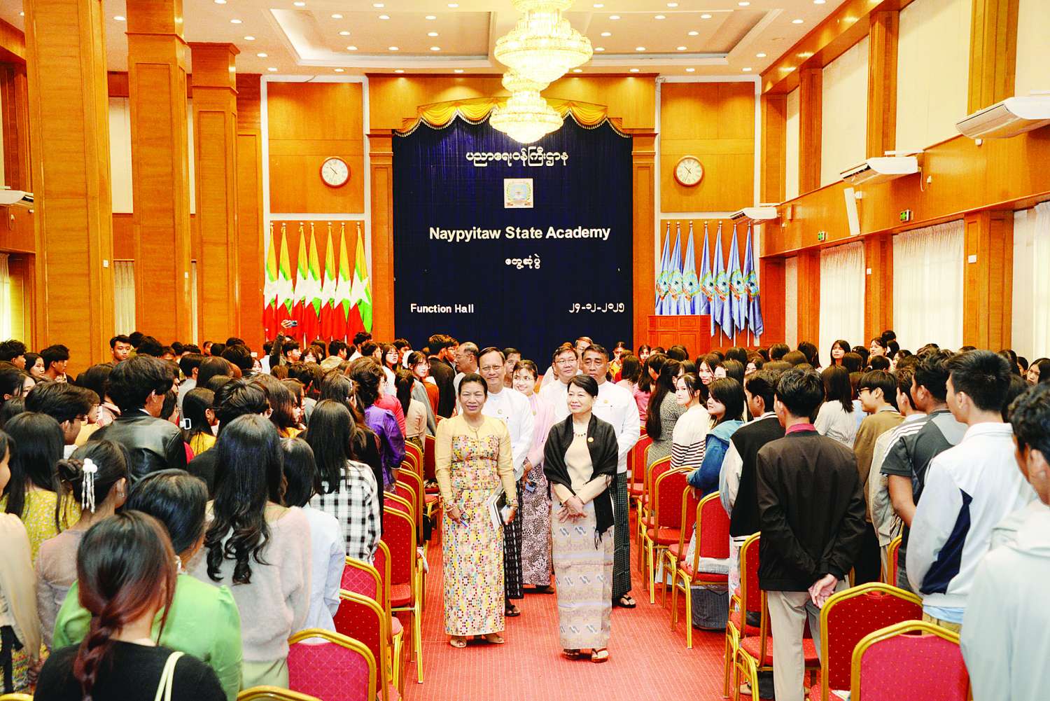 ပညာရေးဝန်ကြီးဌာန ပြည်ထောင်စုဝန်ကြီး ဒေါက်တာချောချောစိန်သည် ယနေ့နံနက်ပိုင်းတွင် Naypyitaw State Academy သို့ရောက်ရှိပြီး ပါမောက္ခချုပ်၊ ဒုတိယပါမောက္ခချုပ်၊ ပါမောက္ခ (ဌာနမှူး) များ၊ ဆရာ ဆရာမများ၊ ဝန်ထမ်းများ၊ ကျောင်းသား ကျောင်းသူများနှင့် တွေ့ဆုံသည်။