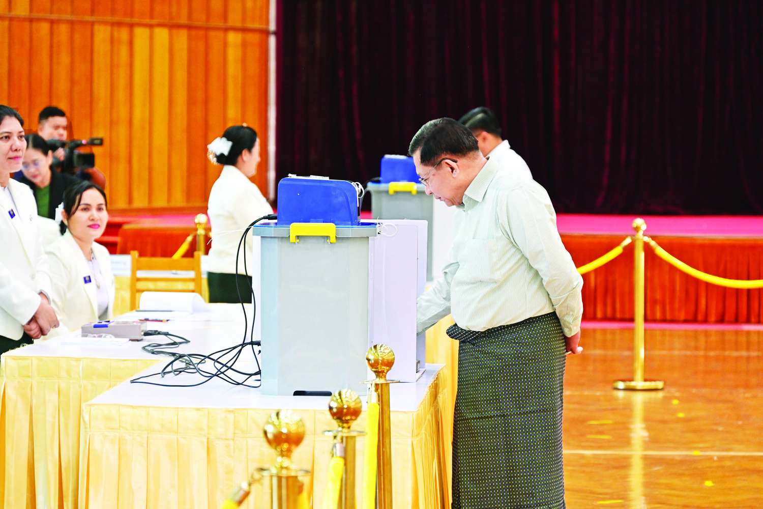 ထိုသို့ဆန္ဒမဲများပေးကြရာ နိုင်ငံတော်ယာယီသမ္မတ နိုင်ငံတော်လုံခြုံရေးနှင့် အေးချမ်းသာယာရေးကော်မရှင်ဥက္ကဋ္ဌ ဗိုလ်ချုပ်မှူးကြီး မင်းအောင်လှိုင်သည် ကော်မရှင်ဒုတိယဥက္ကဋ္ဌ ဒုတိယတပ်မတော်ကာကွယ်ရေးဦးစီးချုပ် ကာကွယ်ရေးဦးစီးချုပ်(ကြည်း) ဒုတိယဗိုလ်ချုပ်မှူးကြီး စိုးဝင်းနှင့် ဇနီး ဒေါ်သန်းသန်းနွယ်၊ ကော်မရှင်အတွင်းရေးမှူး ဗိုလ်ချုပ်ကြီး ရဲဝင်းဦးနှင့် ဇနီး၊ ကော်မရှင်အဖွဲ့ဝင် ညှိနှိုင်းကွပ်ကဲရေးမှူး (ကြည်း၊ ရေ၊ လေ) ဗိုလ်ချုပ်ကြီး ကျော်စွာလင်းနှင့် ဇနီး၊ ကာကွယ်ရေးဦးစီးချုပ်ရုံးမှ အဆင့်မြင့်တပ်မတော်အရာရှိကြီးများနှင့် ဇနီးများ၊ အရာရှိ၊ စစ်သည်၊ မိသားစုဝင်များနှင့်အတူ နေပြည်တော်ကောင်စီနယ်မြေ ဇေယျာသီရိမြို့နယ် အနော်ရထာရပ်ကွက်ရှိ မဲရုံအမှတ်(၁)၌ ပါဝင်ဆန္ဒမဲပေးကြသည်။