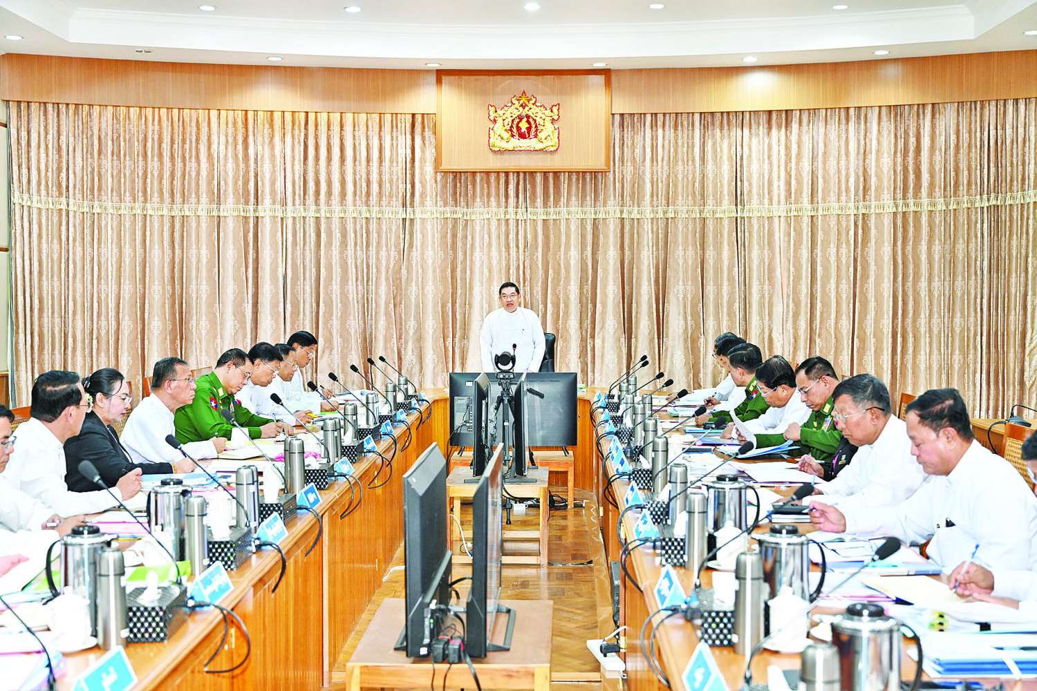 နိုင်ငံတော်အစိုးရအနေဖြင့် အွန်လိုင်းလိမ်လည်လောင်းကစားမှုများ၊ တရားမဝင်ကုန်သွယ်မှုလုပ်ငန်းများနှင့် မူးယစ်ဆေးဝါး သယ်ဆောင်ရောင်းဝယ်မှု တားဆီးကာကွယ်တိုက်ဖျက်ရေး လုပ်ငန်းများကို အမျိုးသားရေးတာဝန်တစ်ရပ်အဖြစ်သတ်မှတ်၍ အစဉ်တစိုက် အလေးထားဆောင်ရွက်လျက်ရှိကြောင်း၊ “နိုင်ငံတော် ရွှေသီးဖို့ ကုန်ထုတ်လုပ်မှု အားပေးစို့” ဟူသည့် ဆောင်ပုဒ်နှင့်အညီ နိုင်ငံ့စီးပွားမြှင့်တင်နိုင်ရေးအတွက် စိုက်ပျိုးရေးနှင့် မွေးမြူရေးအပါအဝင် ဒေသထွက်ကုန်ကြမ်း များကိုအသုံးပြုသည့် MSME လုပ်ငန်း များ ဖွံ့ဖြိုးတိုးတက်ရေးအတွက်လည်း အောင်မြင်ဖြစ်ထွန်းအောင် ဆောင်ရွက်ကြရမည်ဖြစ်ကြောင်း၊ စီးပွားရေးကောင်းမွန်မှသာ နိုင်ငံတော်ဖွံ့ဖြိုးတိုးတက် ရေးဆောင်ရွက်နိုင်မည်ဖြစ်ကြောင်း၊ နိုင်ငံတော်အကြီးအကဲကိုယ်တိုင် တိုင်းဒေသကြီးနှင့် ပြည်နယ်များသို့ သွားရောက် စစ်ဆေးကြည့်ရှုပြီး လိုအပ်သည်များ လမ်းညွှန်ခဲ့သည့်အတွက် တစ်နှစ်ထက် တစ်နှစ် စိုက်ပျိုးမွေးမြူရေး ထွက်ကုန်များ ပိုမိုတိုးတက်ထုတ်လုပ်နိုင်ခဲ့ကြောင်း။