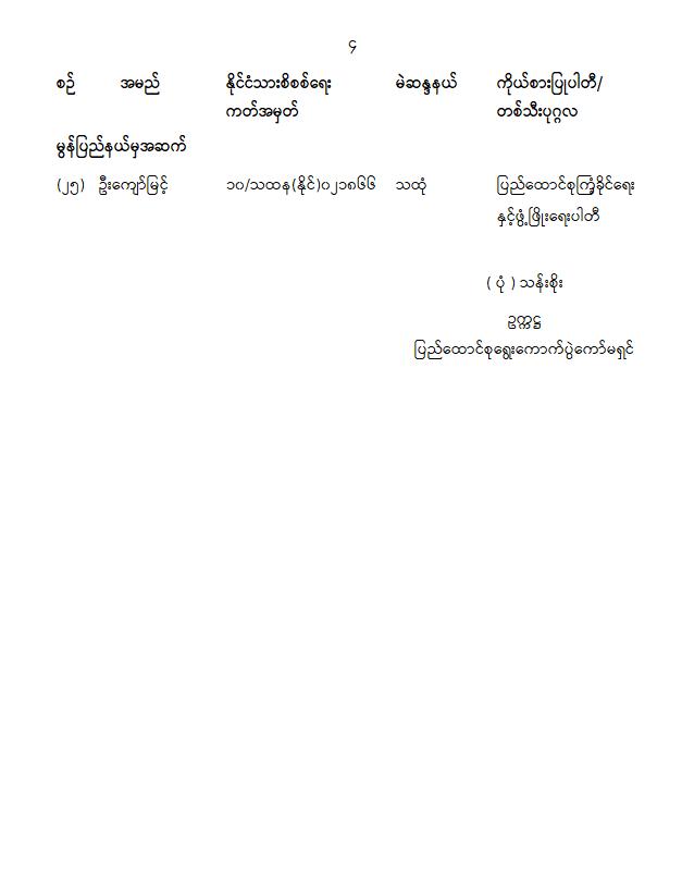 ဝန်ကြီးဌာန ကြေညာချက်များ