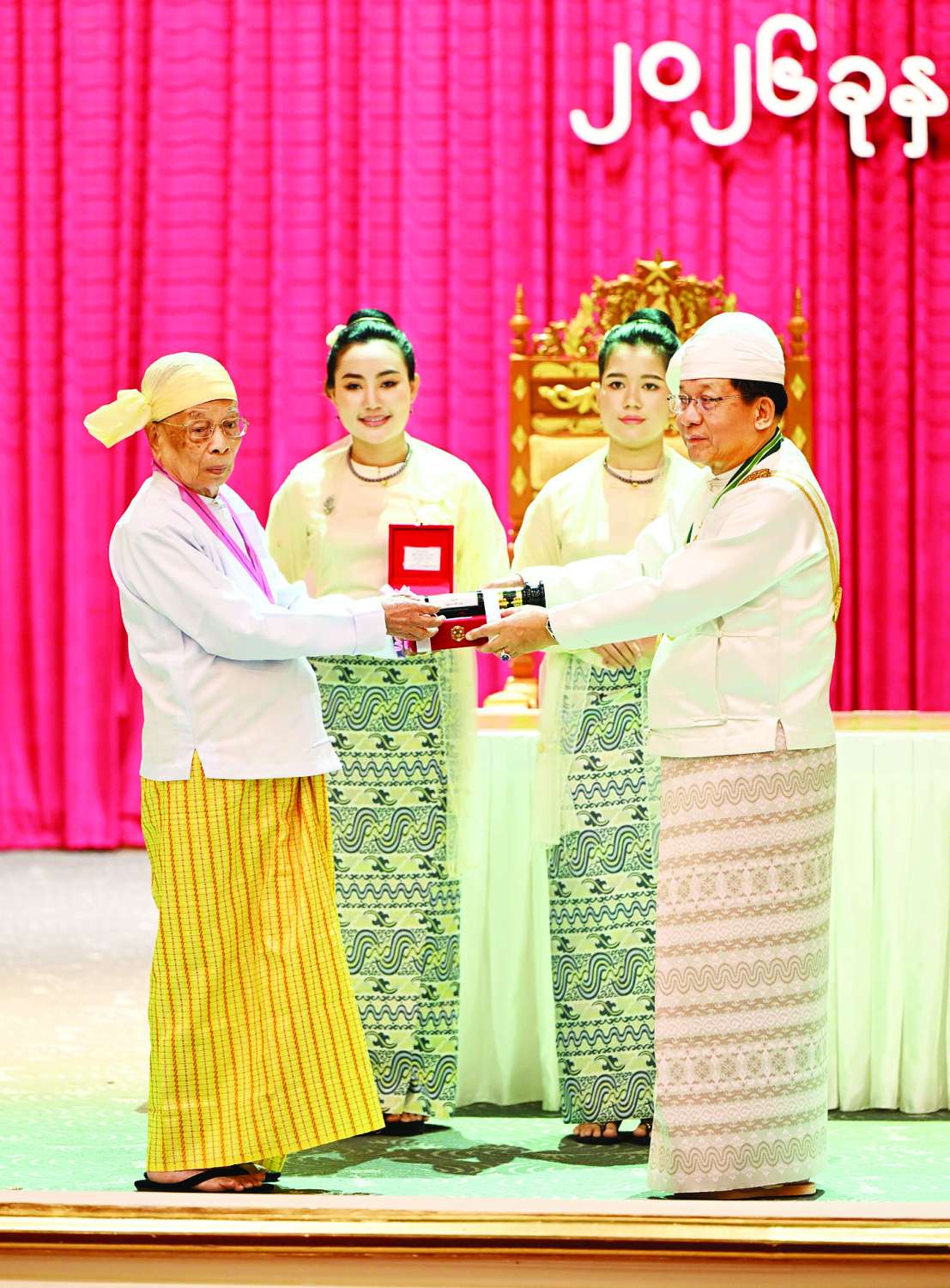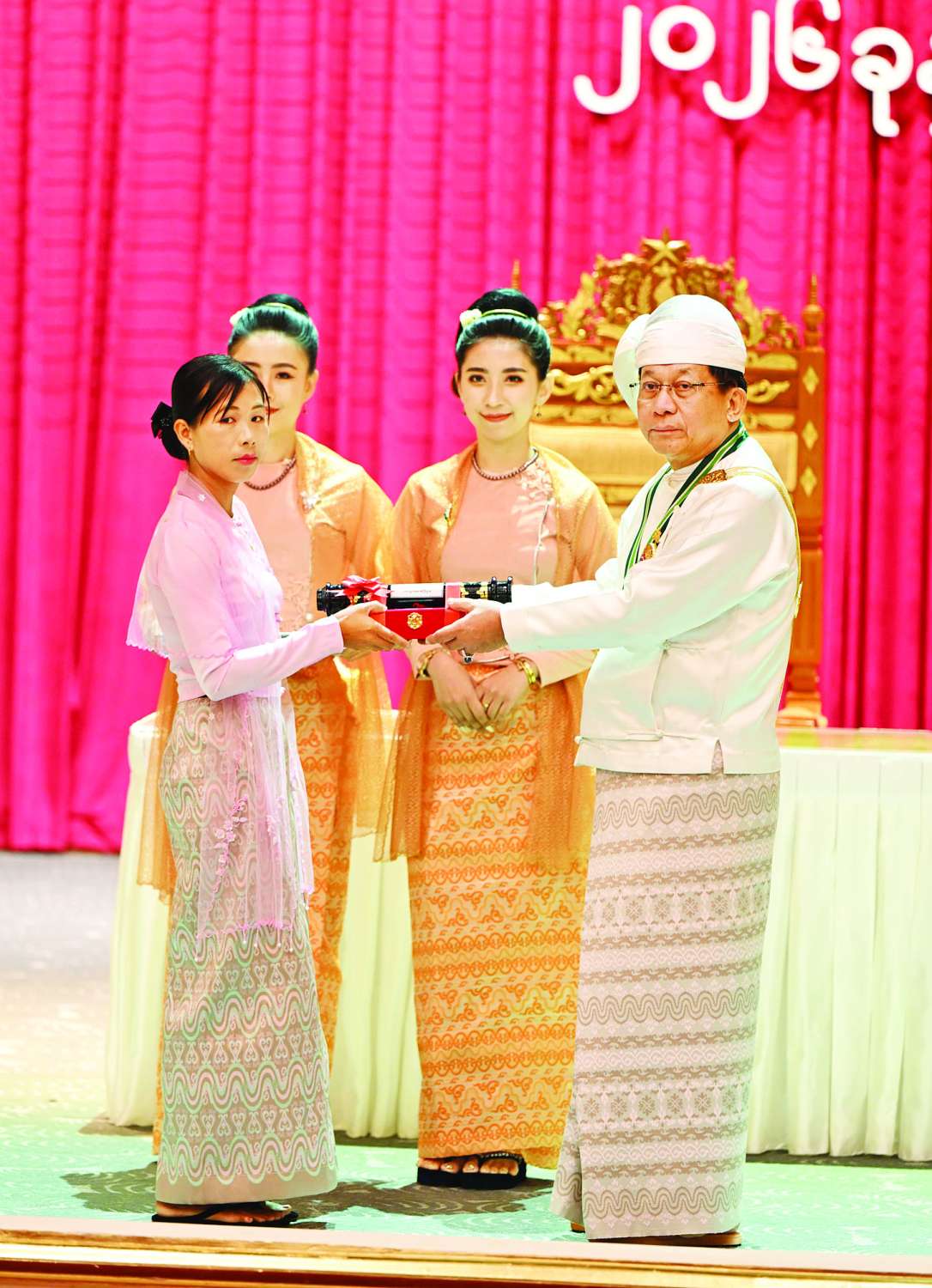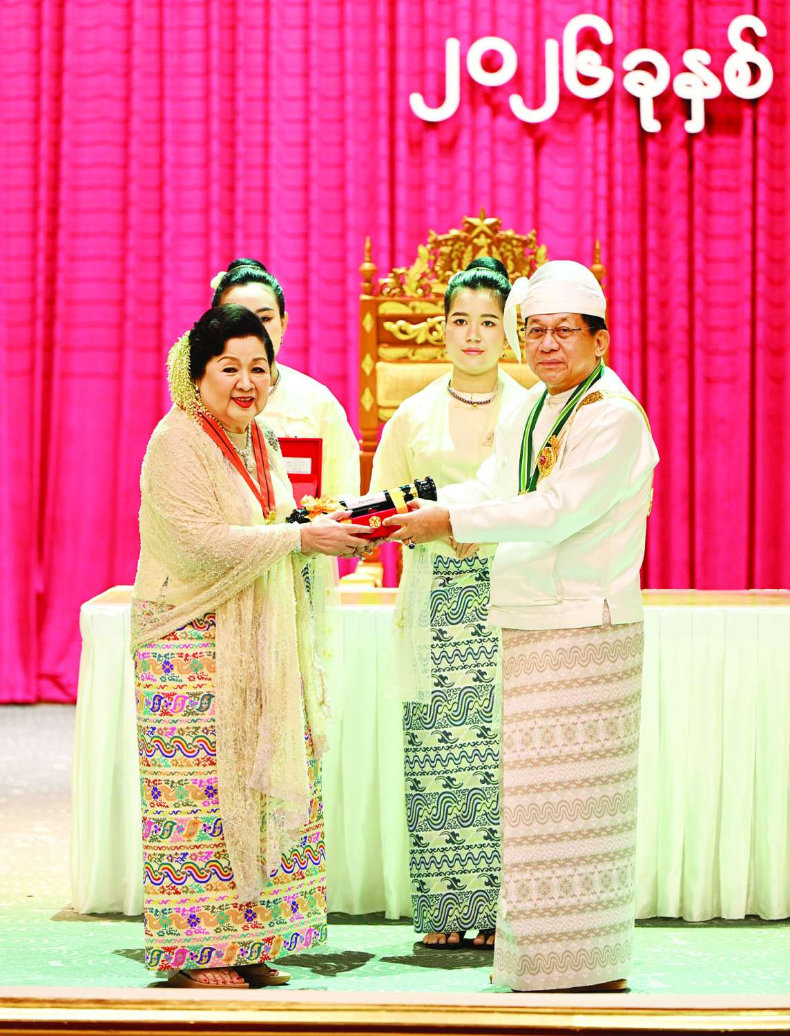 (၇၈) နှစ်မြောက် လွတ်လပ်ရေးနေ့အထိမ်းအမှတ်အနေဖြင့် ယနေ့ကျင်းပသည့် ဂုဏ်ထူးဆောင်ဘွဲ့များ ချီးမြှင့်အပ်နှင်းခြင်းအခမ်းအနားတွင် မြန်မာနှစ်ဆန်းတစ်ရက်နေ့ အထိမ်းအမှတ်အဖြစ် ၂၀၂၅ ခုနှစ်၊ ဧပြီလ ၁၇ ရက်နေ့က အမိန့်ကြော်ငြာစာအမှတ် ၆၀/၂၀၂၅ နှင့် ချီးမြှင့်ခဲ့သည့် စည်သူဘွဲ့ ၁၃ ဦး၊ သီရိပျံချီဘွဲ့ ၉ ဦး၊ ဇေယျကျော်ထင်ဘွဲ့ ၂ ဦး၊ ဝဏ္ဏကျော်ထင်ဘွဲ့ ၄ ဦး၊ အလင်္ကာကျော်စွာဘွဲ့ ၄ ဦး၊ မြန်မာအမျိုးသမီးများနေ့ အထိမ်းအမှတ်အဖြစ် ၂၀၂၅ ခုနှစ်၊ ဇူလိုင်လ ၂ ရက်နေ့တွင် အမိန့်ကြော်ငြာစာအမှတ် ၉၅/၂၀၂၅ နှင့် ချီးမြှင့်ခဲ့သည့် ဝဏ္ဏကျော်ထင်ဘွဲ့ ၃ ဦး၊ အမျိုးသားအောင်ပွဲနေ့အထိမ်း အမှတ်အဖြစ် ၂၀၂၅ ခုနှစ်၊ နိုဝင်ဘာလ ၁၄ ရက်နေ့က အမိန့်ကြော်ငြာစာအမှတ် ၂၀၃/၂၀၂၅ နှင့် ချီးမြှင့်ခဲ့သည့် သီရိပျံချီဘွဲ့ ၁ ဦး၊ ဇေယျကျော်ထင်ဘွဲ့ ၇ ဦး၊ ဝဏ္ဏကျော်ထင် ဘွဲ့ ၁၀ ဦး၊ အလင်္ကာကျော်စွာဘွဲ့ ၆ ဦး၊ သိပ္ပကျော်စွာဘွဲ့ ၁၇ ဦး၊ စုစုပေါင်းဘွဲ့ခံပုဂ္ဂိုလ် ၇၆ ဦးရှိသည့်အနက် အခမ်းအနားတက်ရောက်လက်ခံရယူသည့် ဘွဲ့ခံပုဂ္ဂိုလ်များကို သက်ဆိုင်ရာ ဂုဏ်ထူးဆောင်ဘွဲ့၏ အဆောင်အယောင်တံဆိပ်နှင့် ဂုဏ်ပြုစာလွှာများ ချီးမြှင့်အပ်နှင်းသွားမည်ဖြစ်ကြောင်း။