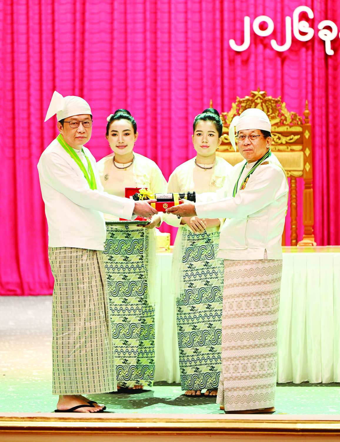 ဘွဲ့ခံပုဂ္ဂိုလ်ကြီးများ၊ ဧည့်သည်တော်ကြီးများအနေဖြင့် ကိုယ်စိတ်နှစ်ဖြာ ရွှင်လန်းချမ်းမြေ့ကြပြီး အသက်ရှည်ရှည်ကျန်းကျန်းမာမာနှင့် မိမိအကျိုး၊ သူတစ်ပါးအကျိုး၊ နိုင်ငံတော်၏ အကျိုးကိုဆတက်ထမ်းပိုးတိုးပွားအောင် သယ်ပိုးရွက်ဆောင်နိုင်ကြပါစေကြောင်း ဆန္ဒပြုဆုမွန်တောင်း ကြောင်းဖြင့်ပြောကြားသည်။